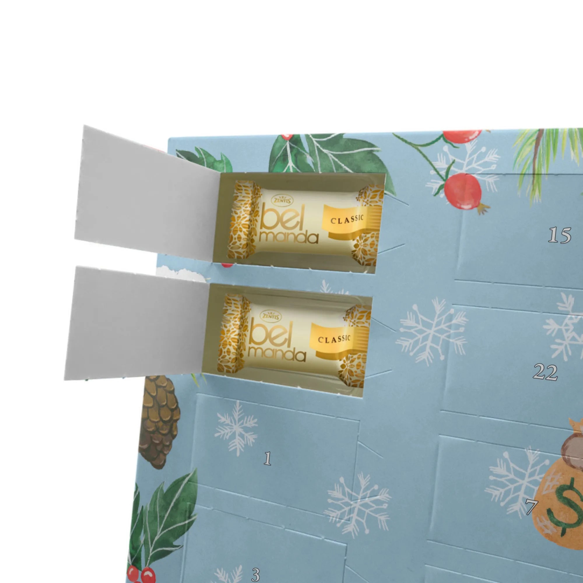 Der süße Adventskalender macht das Warten auf Weihnachten so viel süßer und schöner. Du kannst ihn sowohl aufstellen als auch aufhängen, was ihn noch flexibler macht. Überrasche deine Bankkollegen oder Freunde und zeige, dass du ihre Leidenschaft für den Beruf erkennst und schätzt.