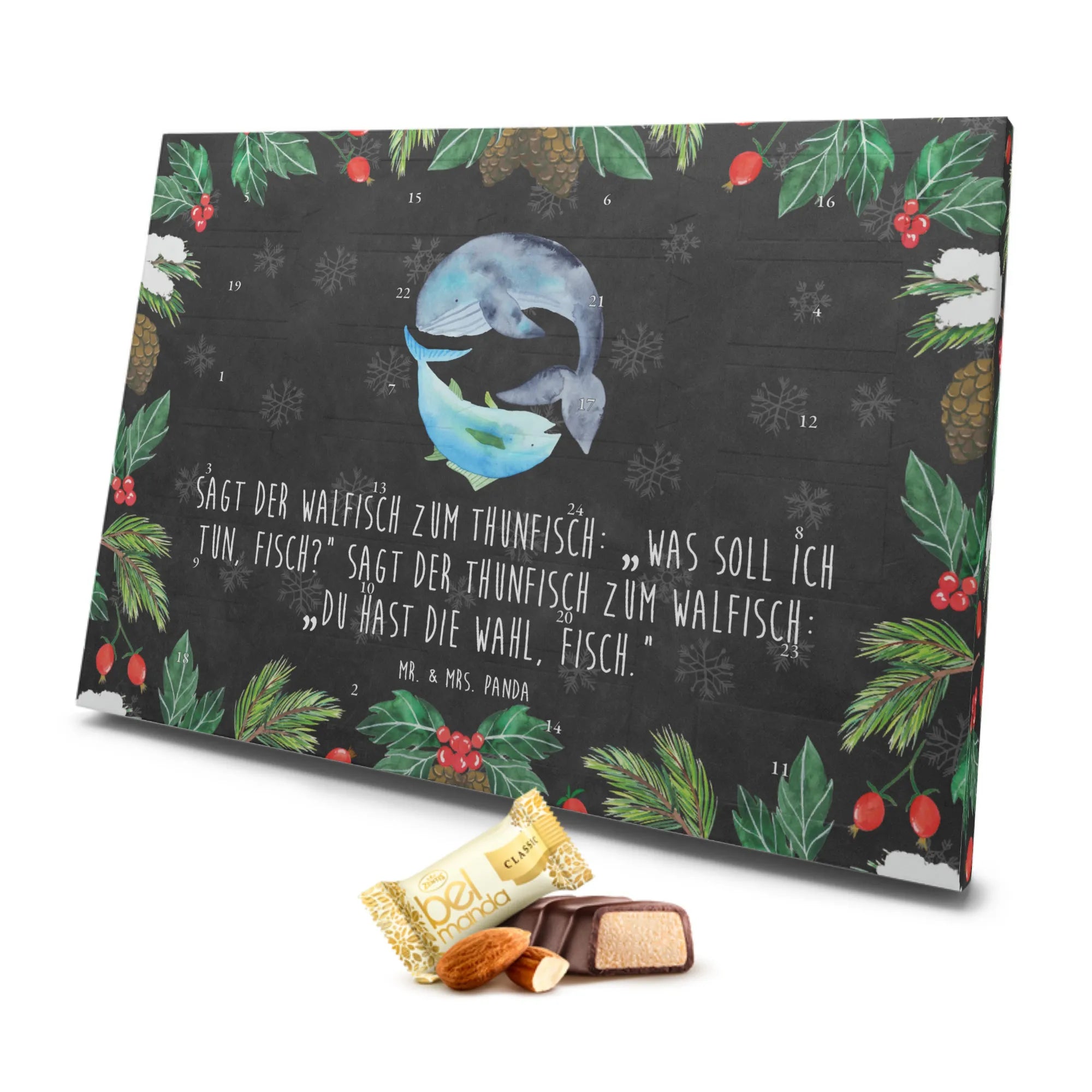 Der Marzipan Adventskalender 'Walfisch & Thunfisch' von Mr. & Mrs. Panda ist nicht nur ein Fest für die Sinne, sondern auch eine Quelle des Guten Laune. Wenn die Adventszeit vor der Tür steht, ist dies das perfekte Geschenk, um die Vorfreude auf Weihnachten zu versüßen. Mit seiner verspielten Gestaltung und dem lustigen Spruch „Sagt der Walfisch zum Thunfisch: „Was soll ich tun, Fisch?“ Sagt der Thunfisch zum Walfisch: „Du hast die Wahl, Fisch.“ bringt dieser Kalender ein Lächeln auf jedes Gesicht. Der wunderschöne Karton, bedruckt mit maritimen Motiven, stellt die beiden faszinierenden Meeresbewohner vor, die zusammen schwimmen und symbolisch für Freundschaft und das gemeinsame Erleben stehen.