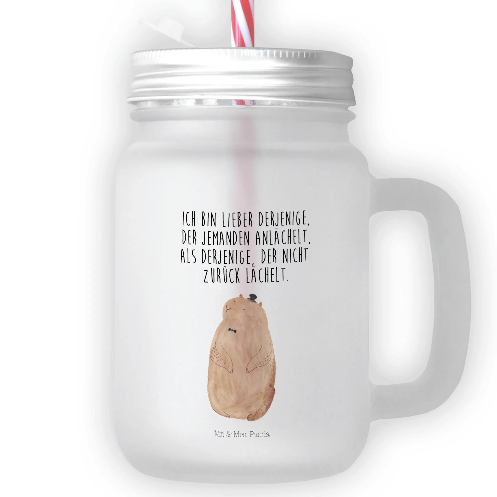 Introducing the delightful Mr. & Mrs. Panda Mason Jar Drinking Glass featuring a charming Groundhog motif from our beloved Small World collection. This adorable drinking glass is not just another glass – it’s a celebration of cheerfulness and friendliness that lights up any occasion!