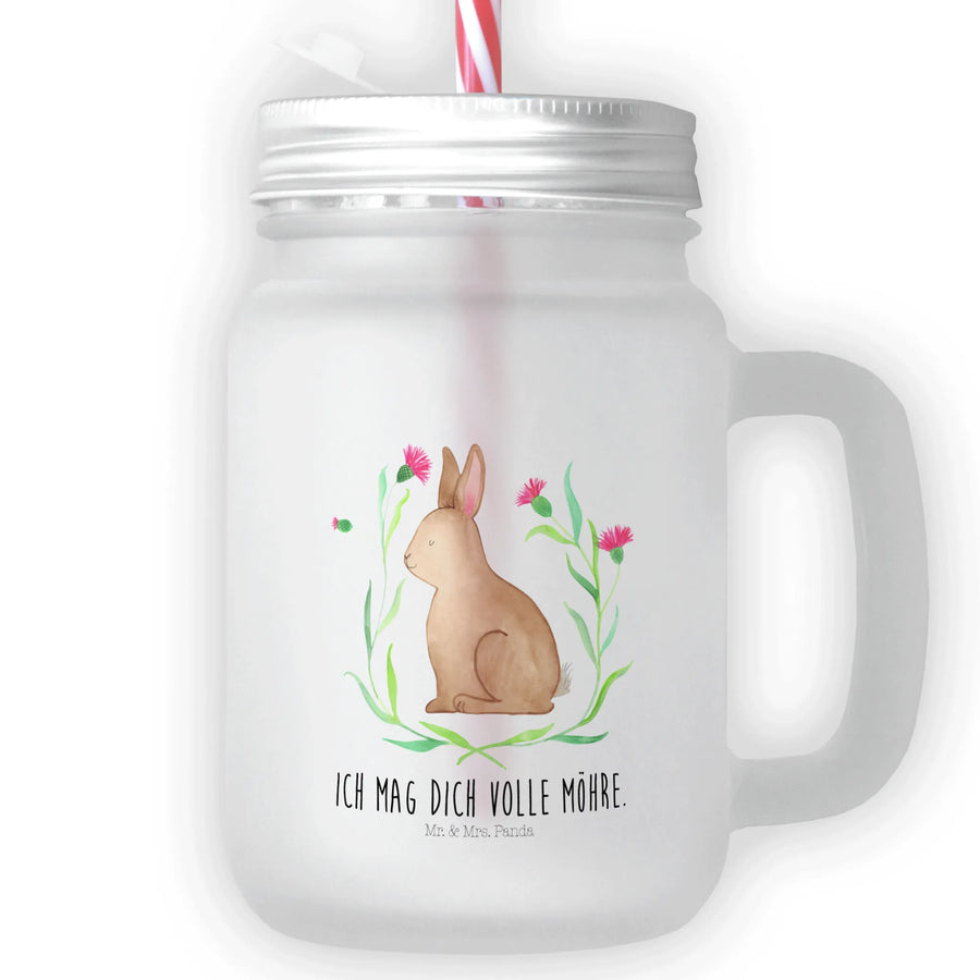 Introducing the charming Mason Jar Drinking Glass featuring a delightful design of a happy Hare sitting among beautiful flowers, a key piece from our enchanting Easter Collection by Mr. & Mrs. Panda! This exquisite glass is not just a practical item; it’s also a beautiful decor piece that brings joy and warmth into any space.