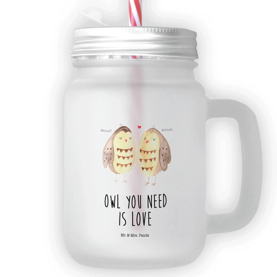 Introducing the delightful Mason Jar Drinking Glass from Mr. & Mrs. Panda featuring the enchanting motif of Owls in Love! Perfect for those who adore whimsical gifts and charming decor, this glass is an exquisite embodiment of affection. Ideal for couples, friends, or anyone who enjoys a good pun, this adorable glass is a wonderful addition to any gathering, be it a summer picnic or a cozy evening by the fire.