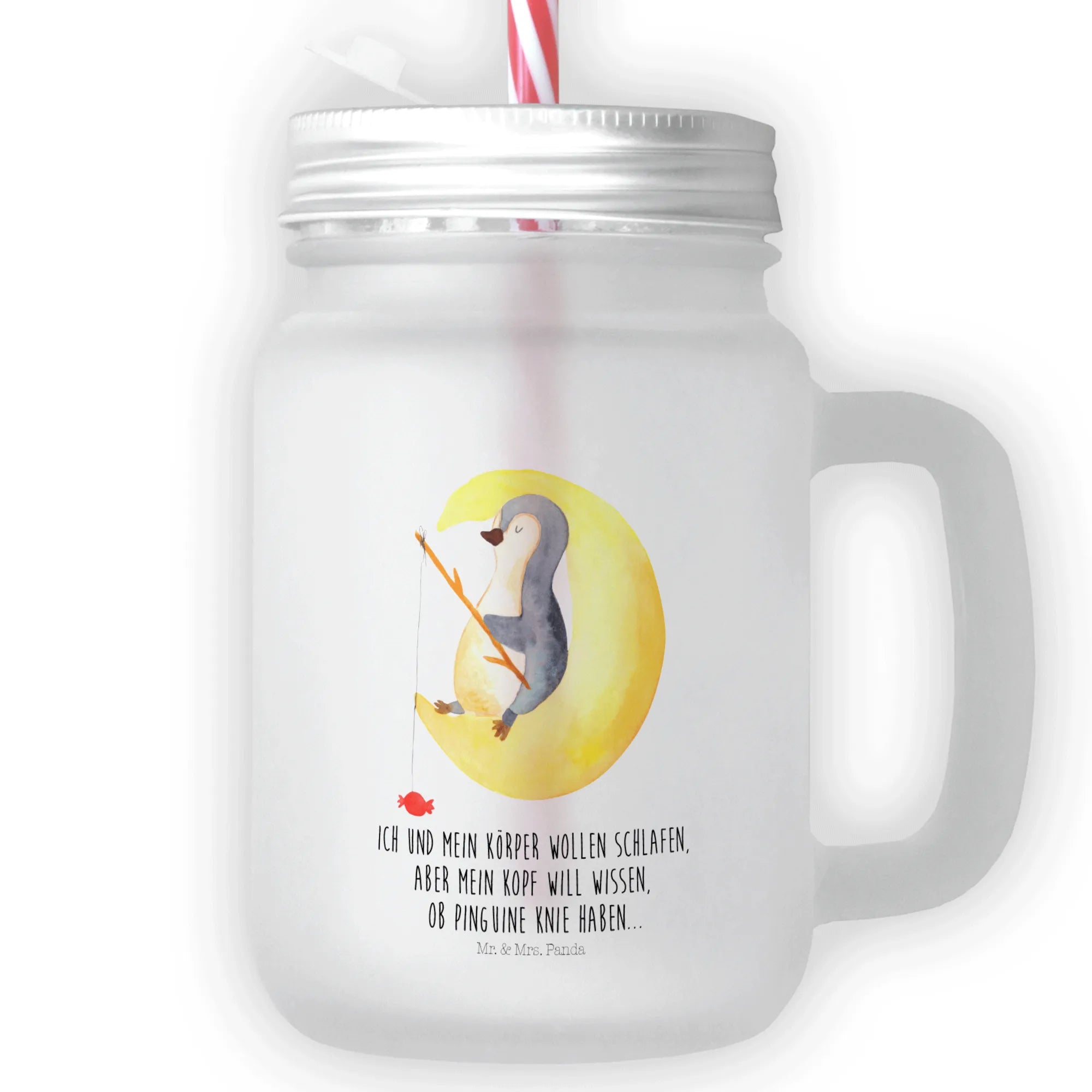 Introducing the Mason Jar Drinking Glass from Mr. & Mrs. Panda, featuring the adorable Penguin Moon motif from the enchanting Penguin Collection!
