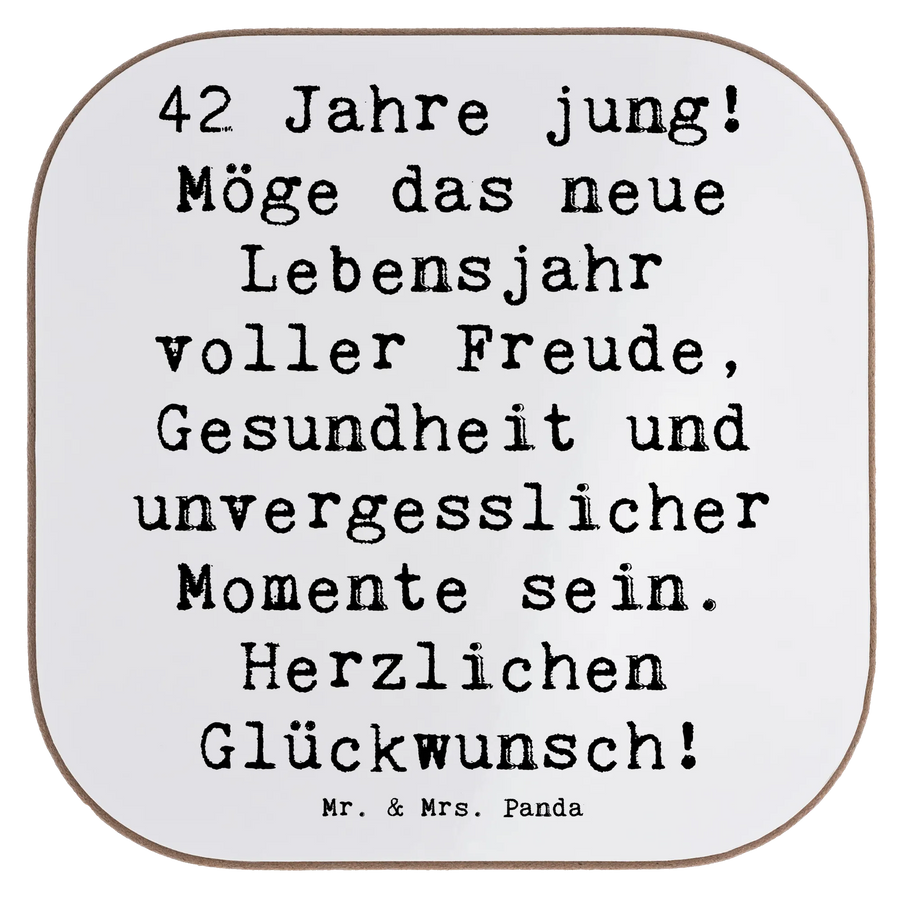 Square coaster Saying 42 Jahre jung! Möge das neue Lebensjahr voller Freude, Gesundheit und unvergesslicher Momente sein. Herzlichen Glückwunsch! - White