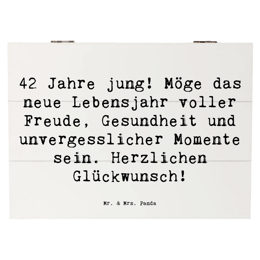 Wooden chest Saying 42 Jahre jung! Möge das neue Lebensjahr voller Freude, Gesundheit und unvergesslicher Momente sein. Herzlichen Glückwunsch! - 25 x 18 cm - White