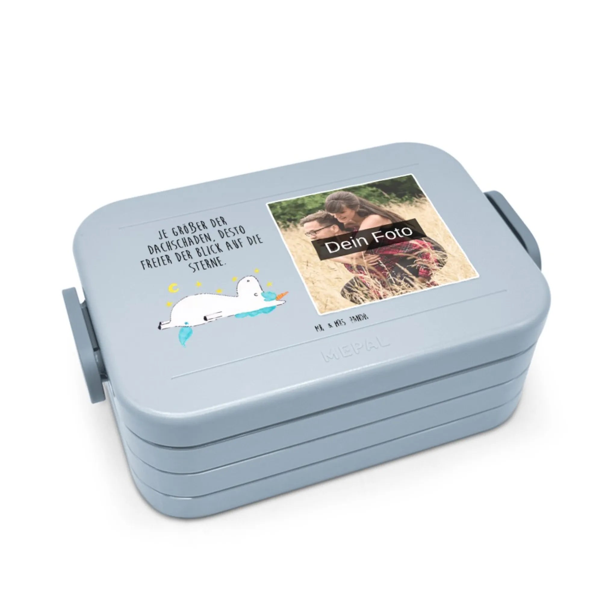 Dein Foto, deine Pause: Kreiere jetzt deine personalisierte Foto Bento-Brotdose von Mr. & Mrs. Panda und zaubere täglich ein Lächeln in die Lunchbox.