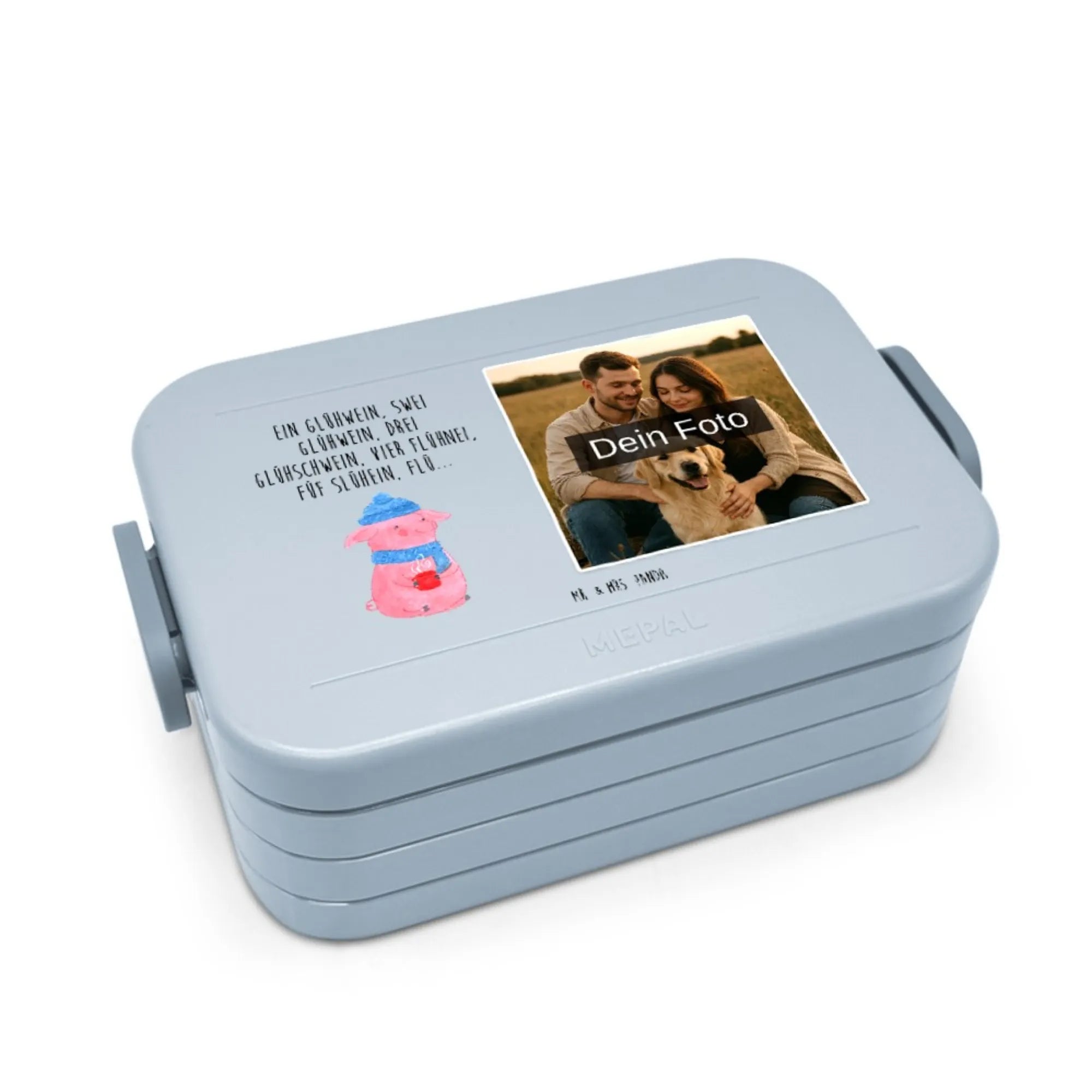 MEPAL Foto Bentobox Schweinchen Glühwein - Blau Pastell