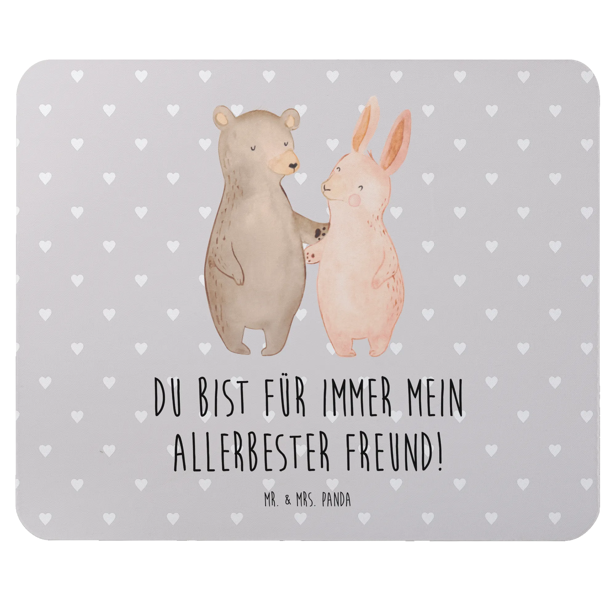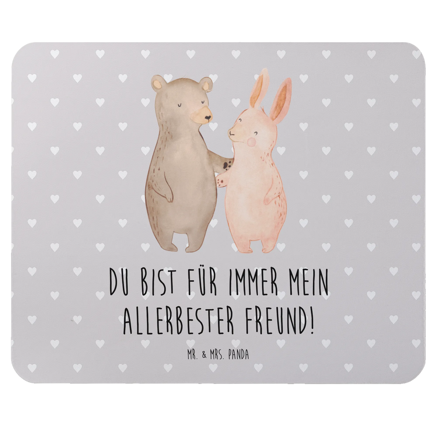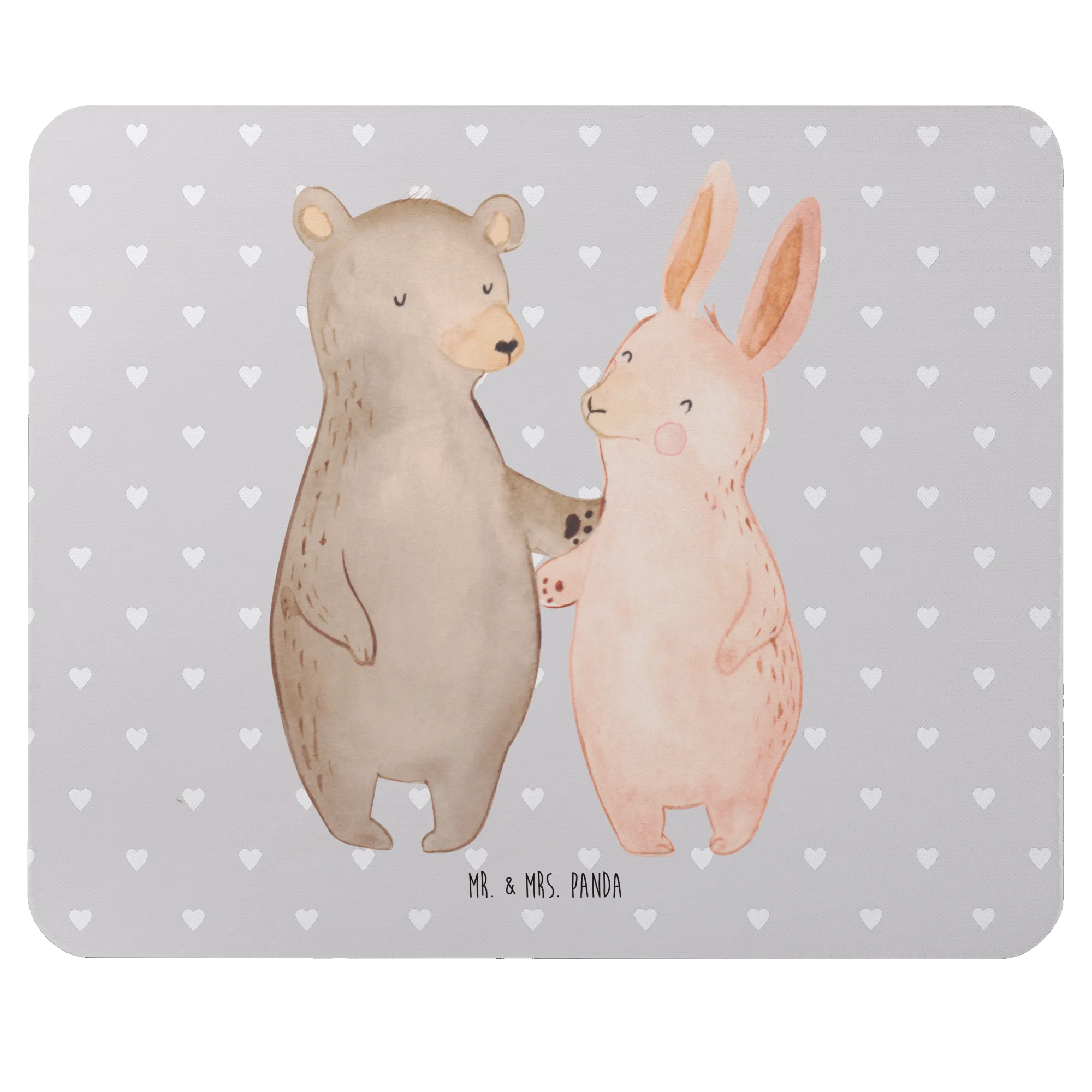 Mouse mat bear and rabbit Embrace - with a saying - Pastel Gray