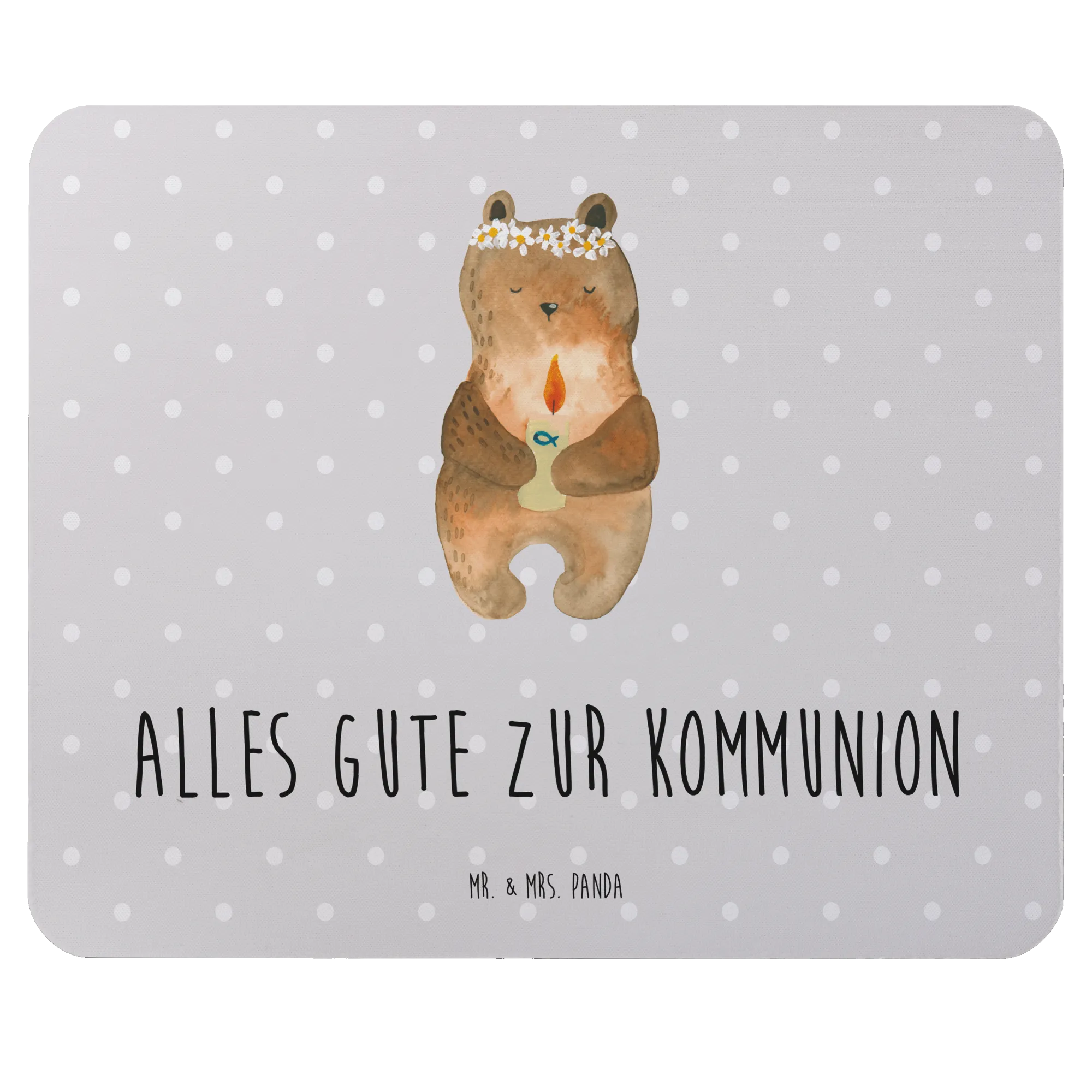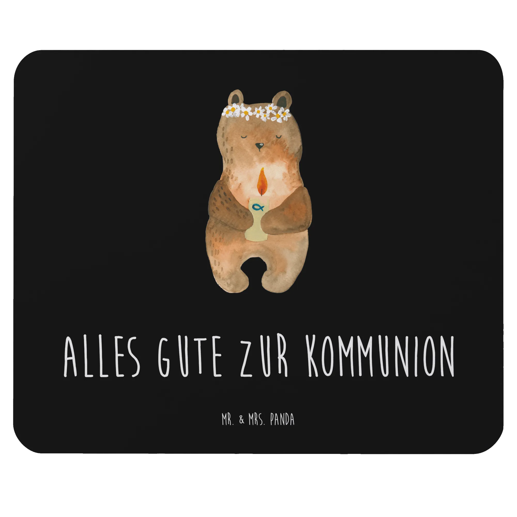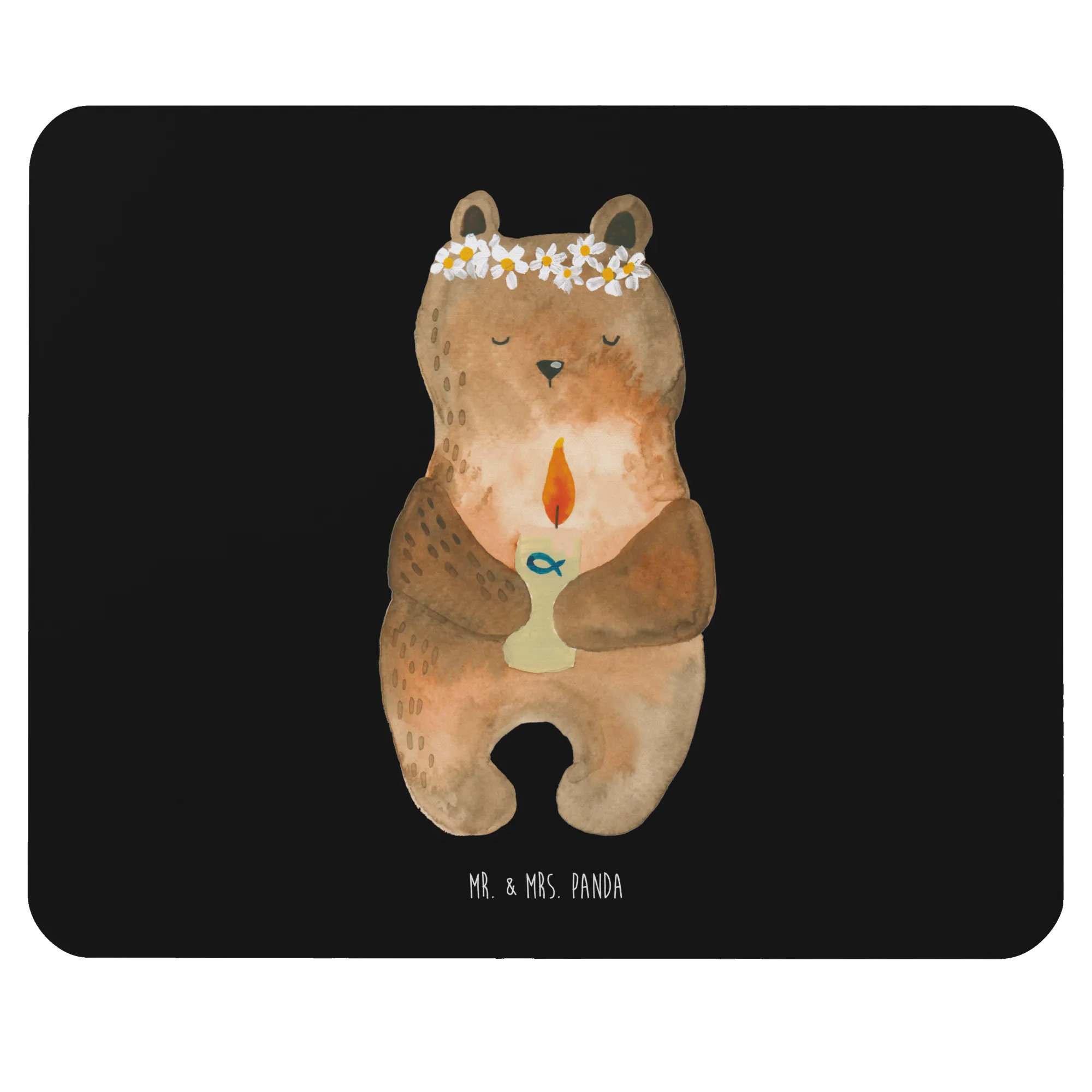 The motif features an adorable bear holding a baptismal candle, surrounded by beautiful flowers, making it an ideal gift for anyone celebrating their communion. It is not only beautiful but also meaningful; the slogan "Alles Gute zur Kommunion" imbues the gift with a special touch, conveying wishes for joy and blessings on a significant day. Just imagine delighting a child or a loved one with this charming mouse pad on their communion day!