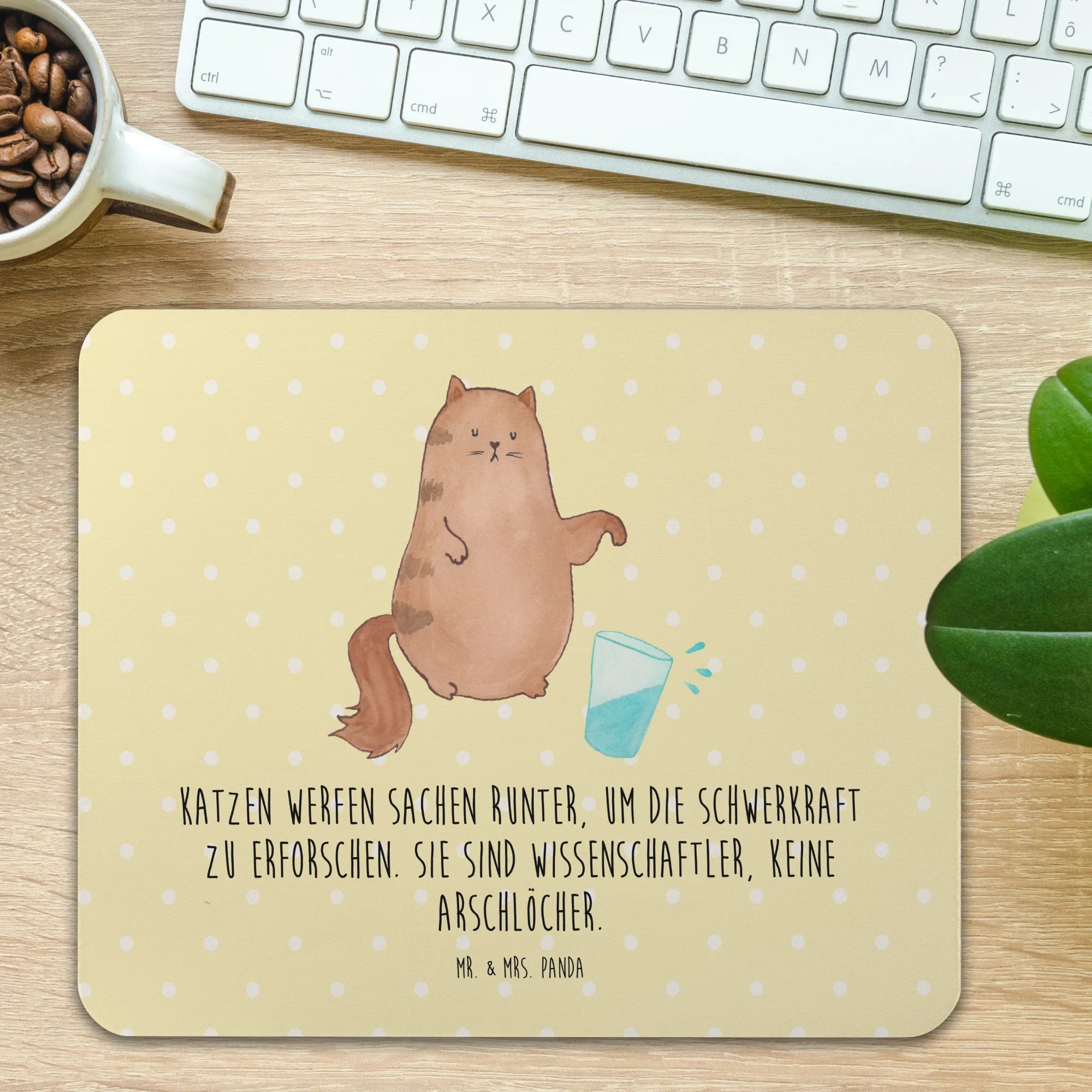 Mouse mat Cat water glass - with saying - Pastel Yellow