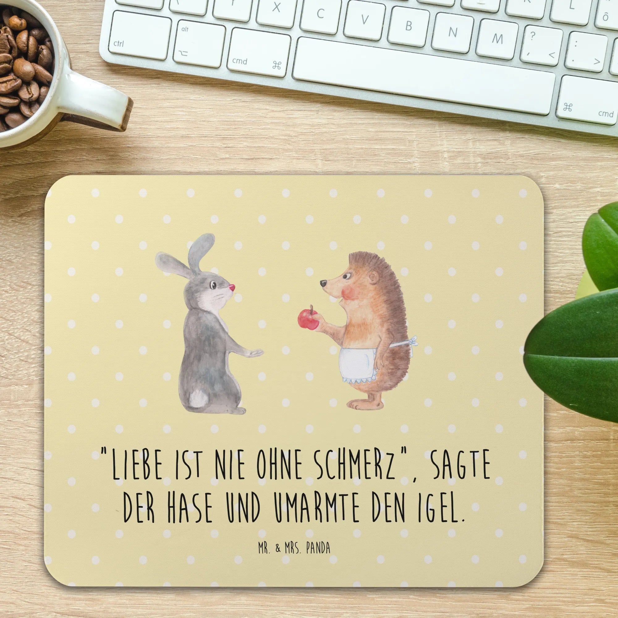 Mouse mat Hare Hedgehog - with saying - Pastel Yellow