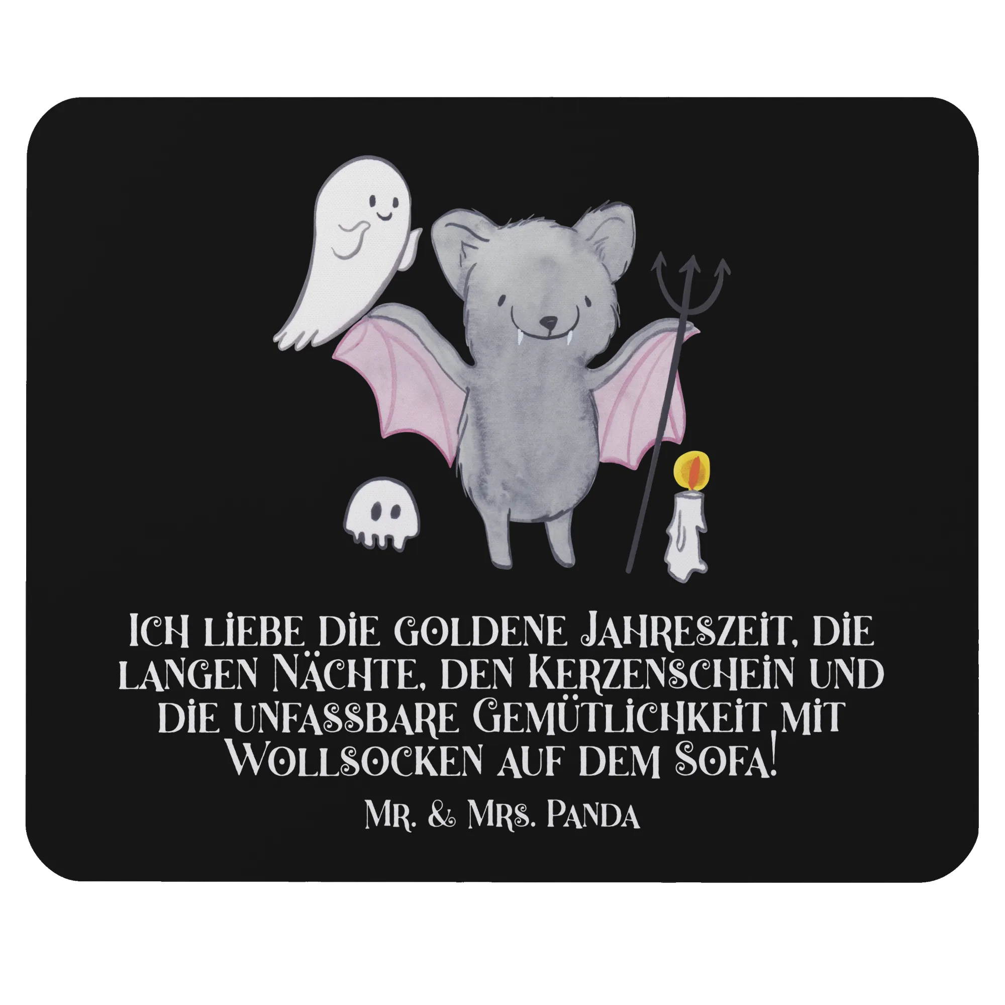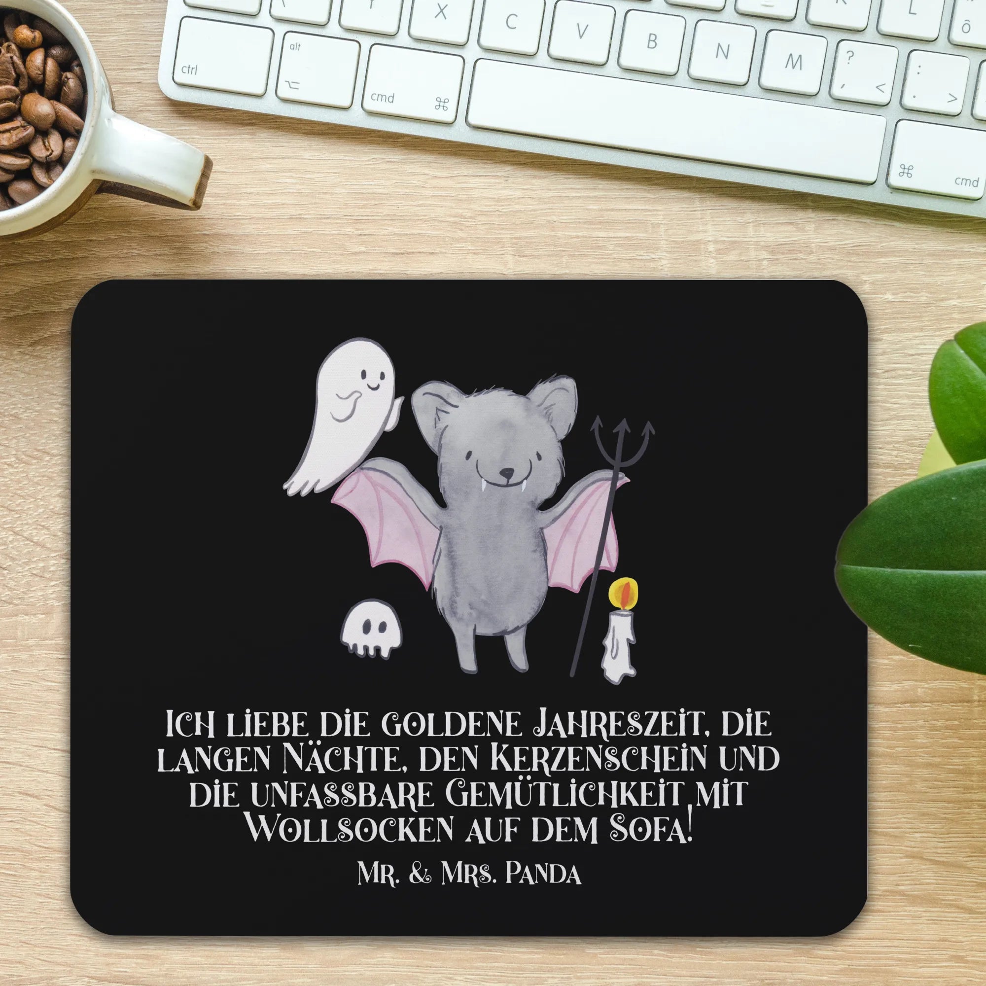 Das Halloween-Motiv, liebevoll von Mrs. Panda gestaltet, bringt die zauberhafte Atmosphäre dieser besonderen Jahreszeit direkt zu dir nach Hause. Mit dem Spruch "Ich liebe die goldene Jahreszeit, die langen Nächte, den Kerzenschein und die unfassbare Gemütlichkeit mit Wollsocken auf dem Sofa!" zaubert dieses Mauspad ein Lächeln auf dein Gesicht und sorgt für die perfekte Stimmung beim Arbeiten oder Zocken.