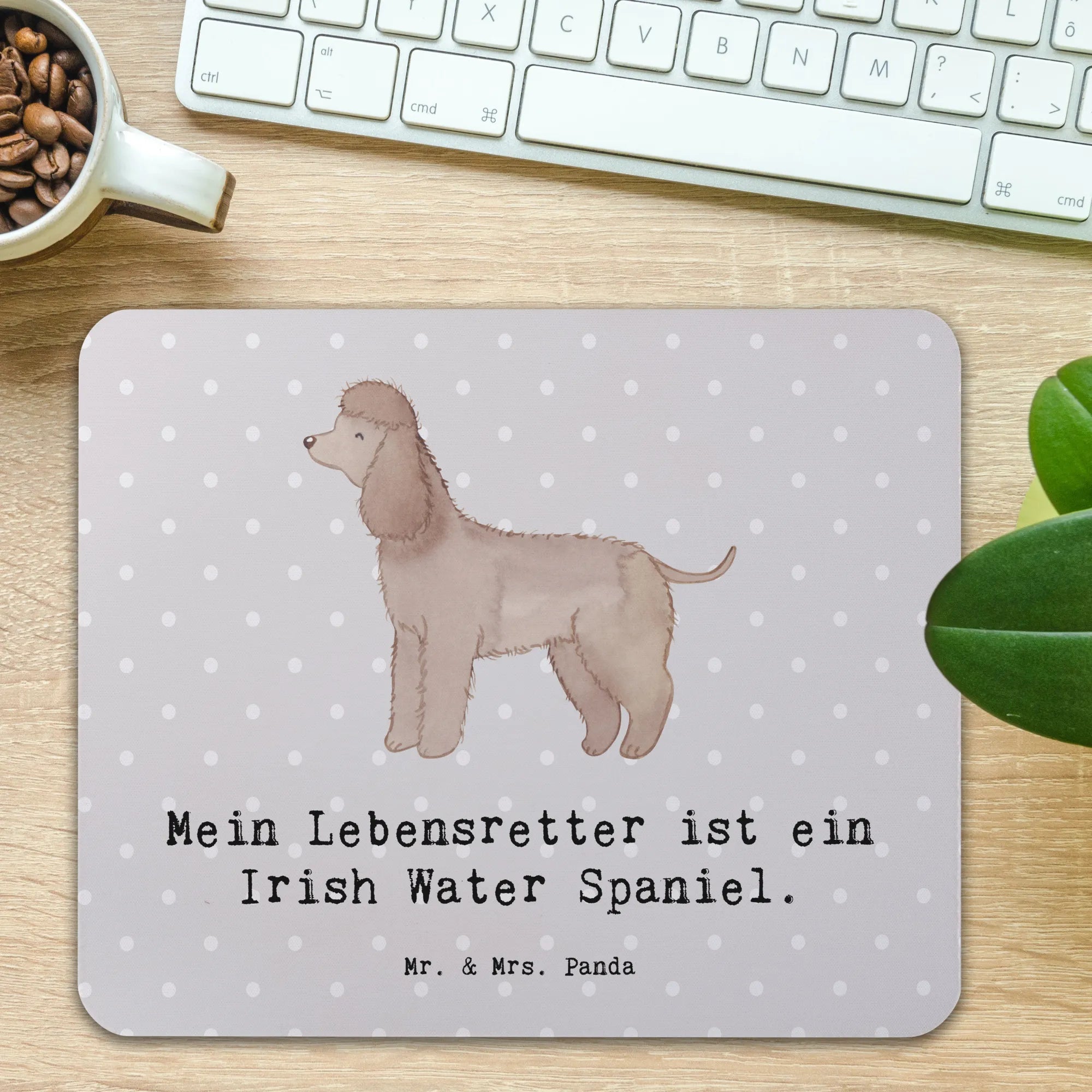 Mouse mat Irish Water Spaniel Lifesaver - with saying - Pastel Gray