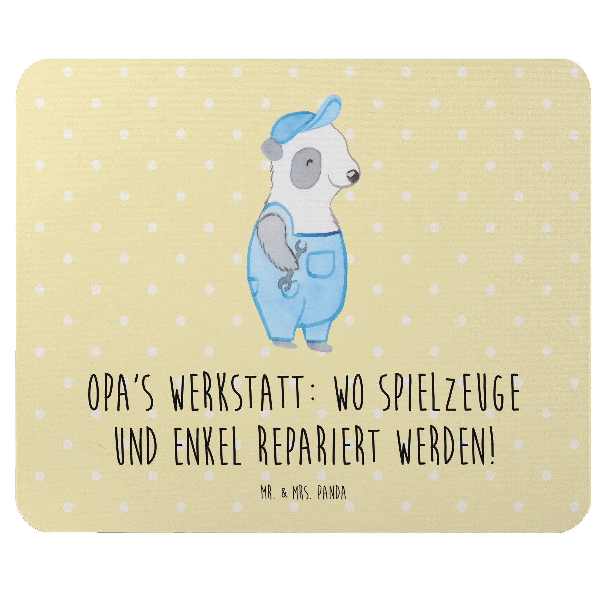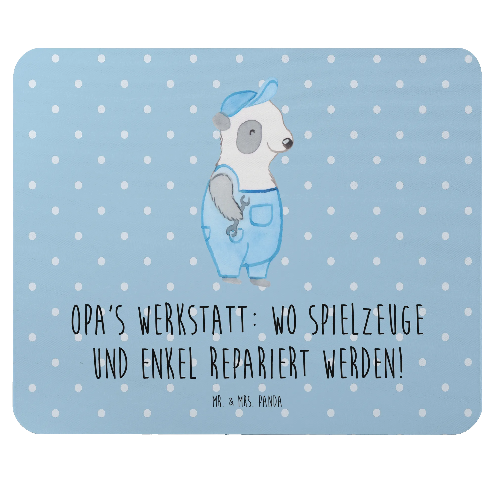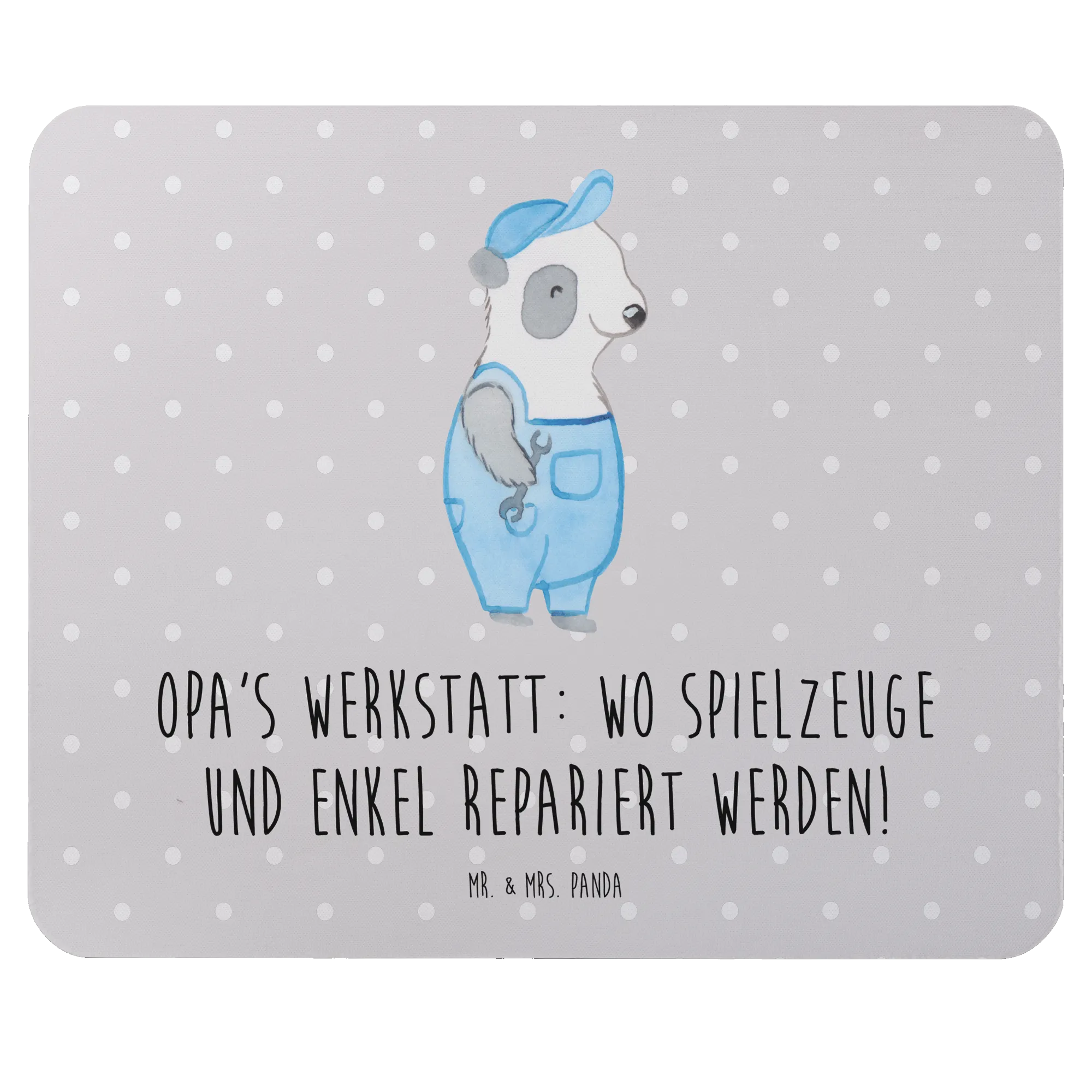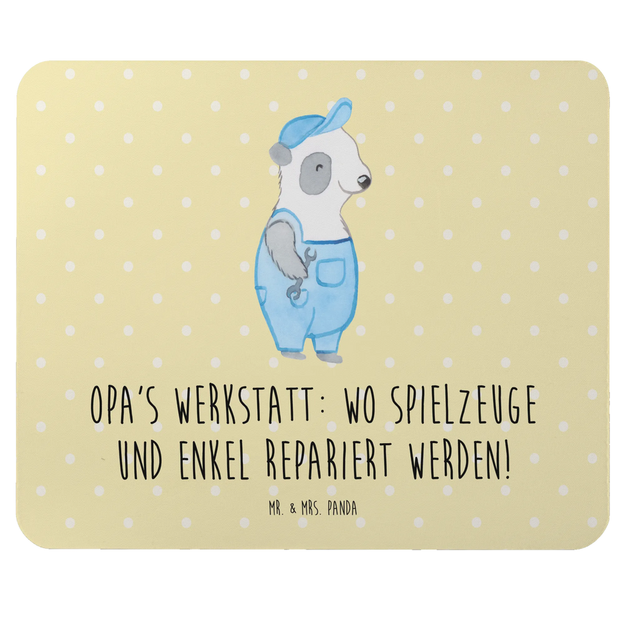 Das wunderschöne Mauspad von Mr. & Mrs. Panda mit dem liebevollen Motiv "Opa's Werkstatt: wo Spielzeuge und Enkel repariert werden!" ist das perfekte Geschenk für alle Großeltern und ein einzigartiges Stück, das in jedes Arbeitszimmer oder Homeoffice gehört!