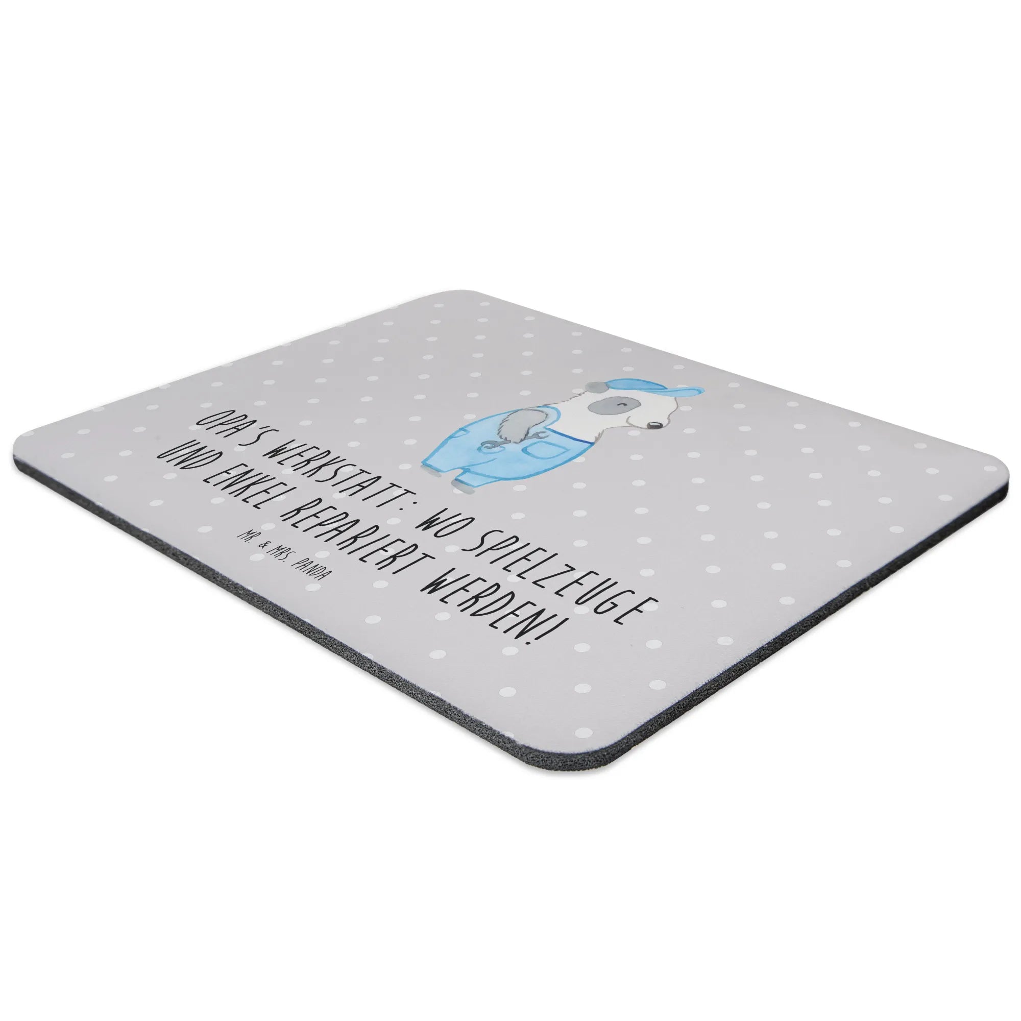 Das Mauspad "Opa's Werkstatt: wo Spielzeuge und Enkel repariert werden!" von Mr. & Mrs. Panda ist das perfekte Geschenk für alle, die Großeltern haben, die einen besonderen Platz in ihrem Herzen einnehmen. Wenn Du nach einem einzigartigen Mauspad für das Büro oder dein Homeoffice suchst, hast Du mit diesem Produkt genau das Richtige gefunden.