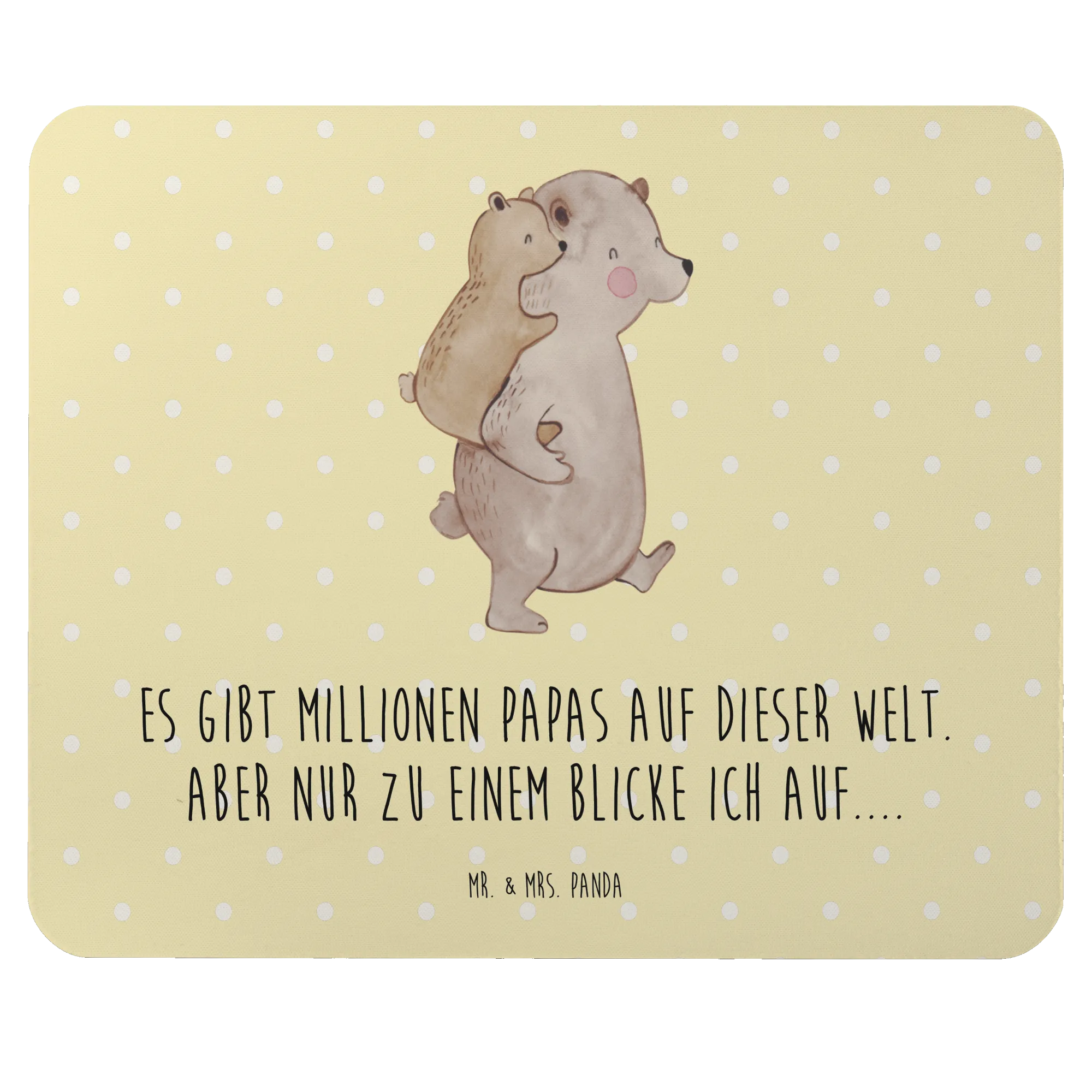 Introducing the delightful Mr. & Mrs. Panda 'Papa Bear' mouse pad, a charming and functional gift that perfectly resonates with those special moments we've all shared with our fathers, uncles, or any father figure. This beautifully designed mouse mat features a heartwarming illustration of a loving Papa Bear with a smaller bear nestled closely on its back, radiating warmth and familial love. The innocent smiles of the bears convey an unbreakable bond, making it an ideal choice to celebrate the essence of family.