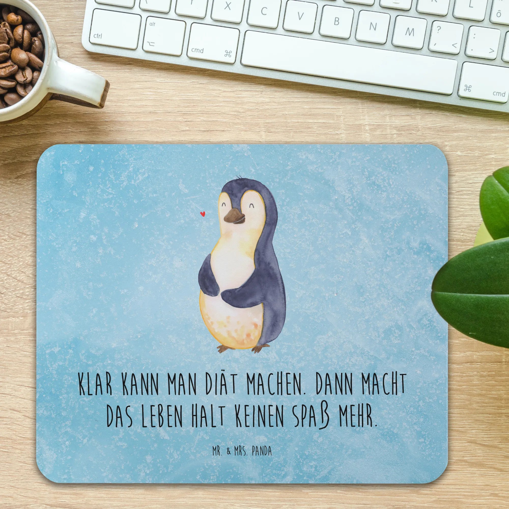 Mouse mat Penguin diet - with a saying - Ice Blue