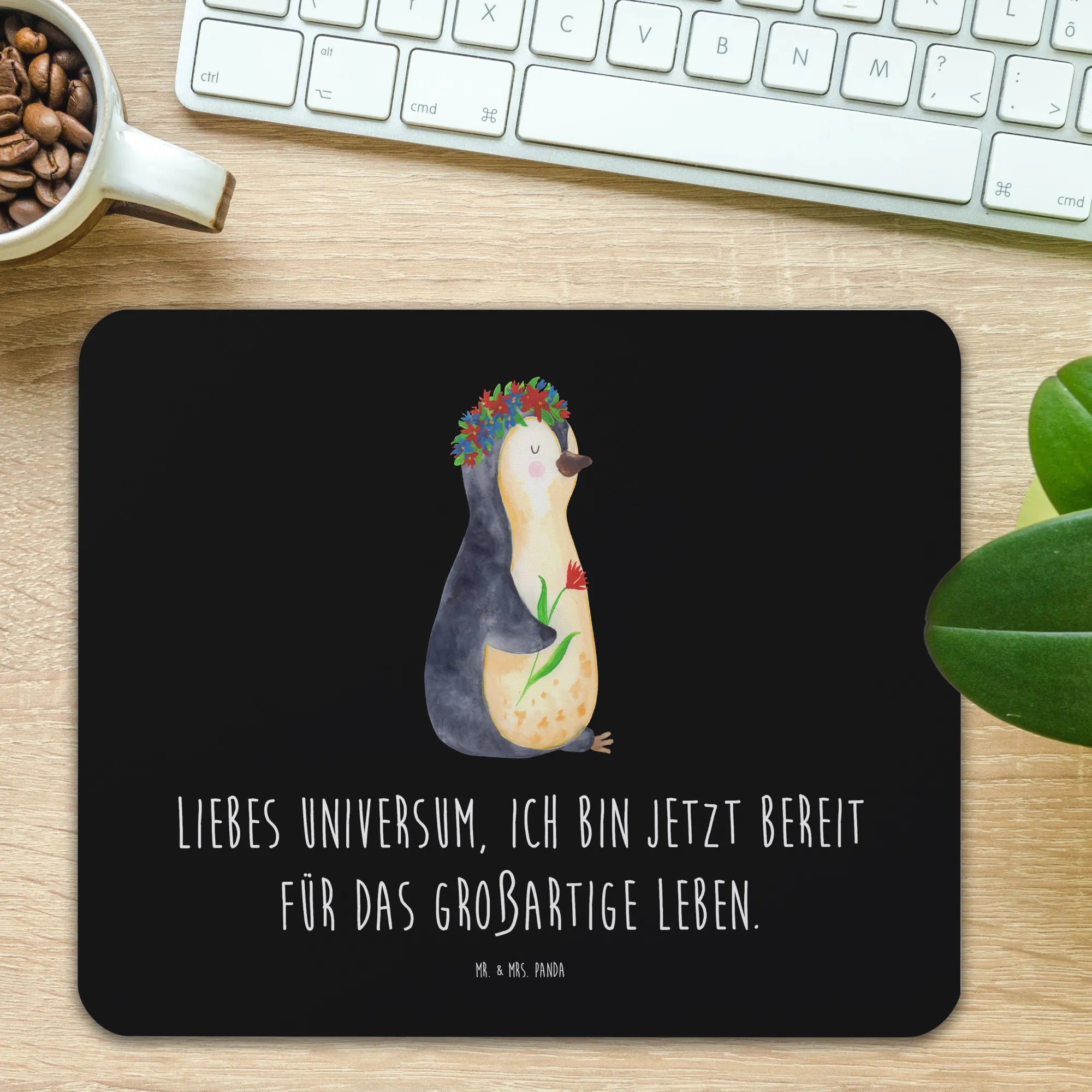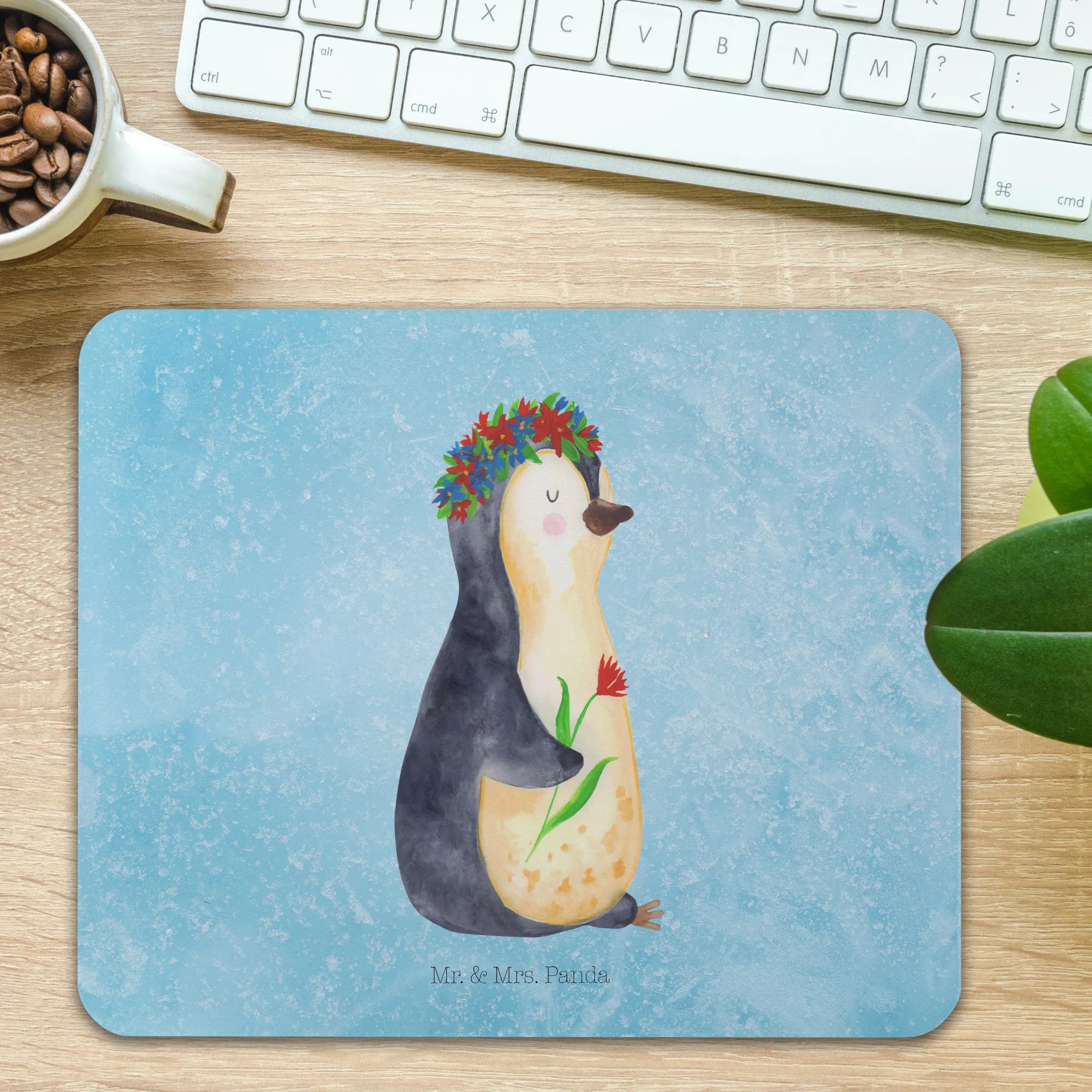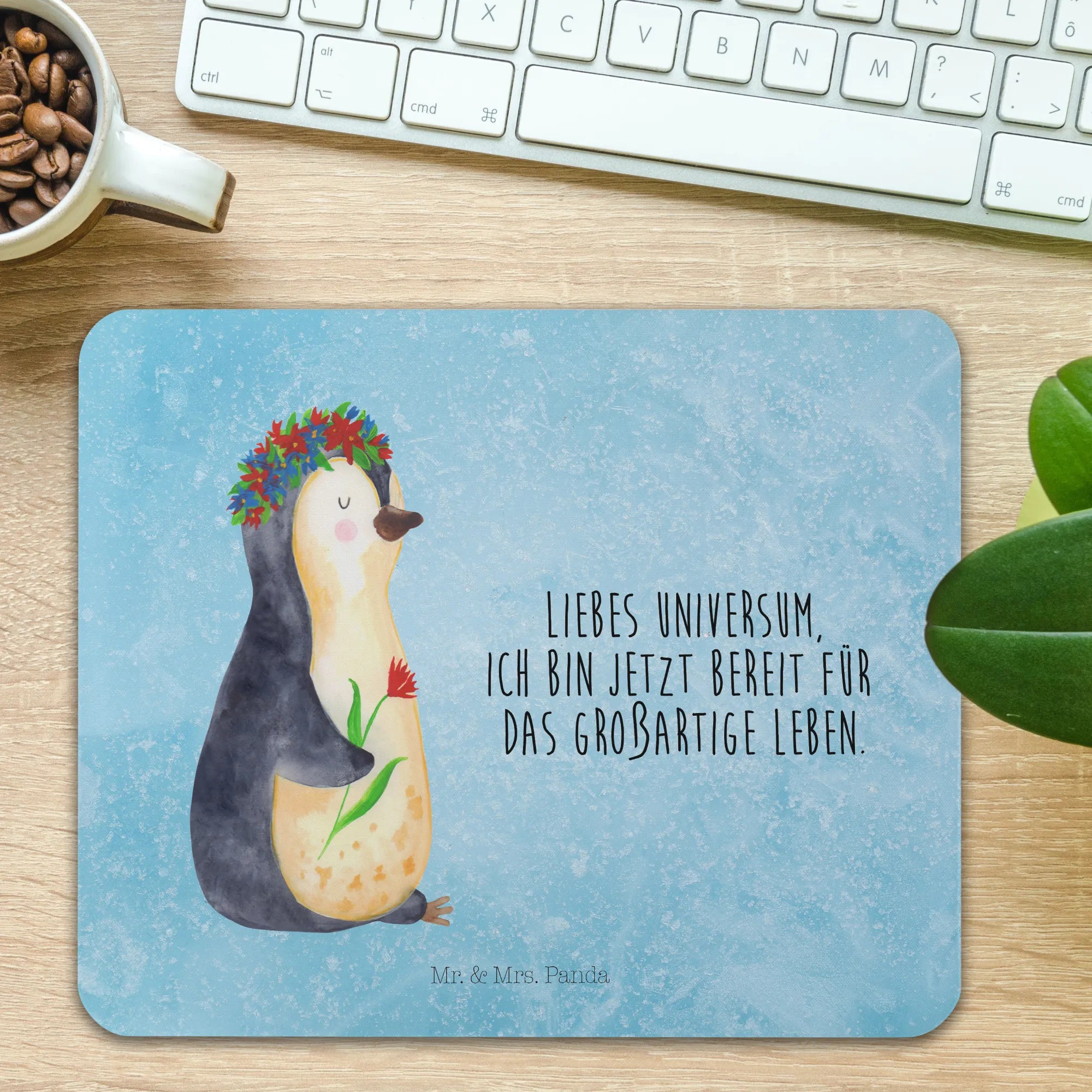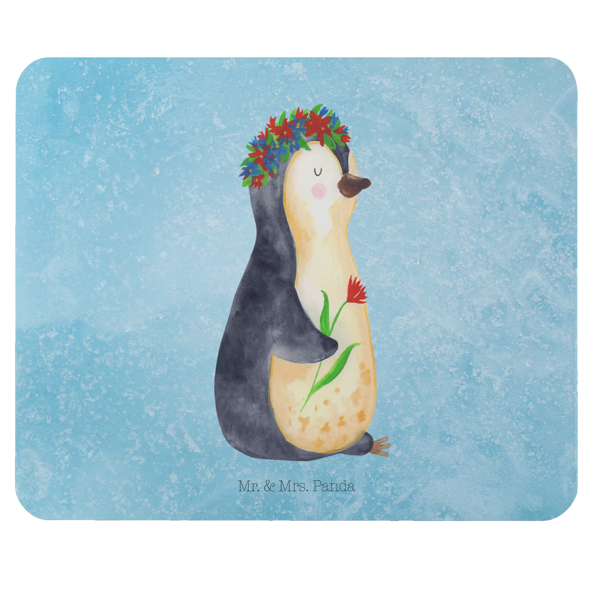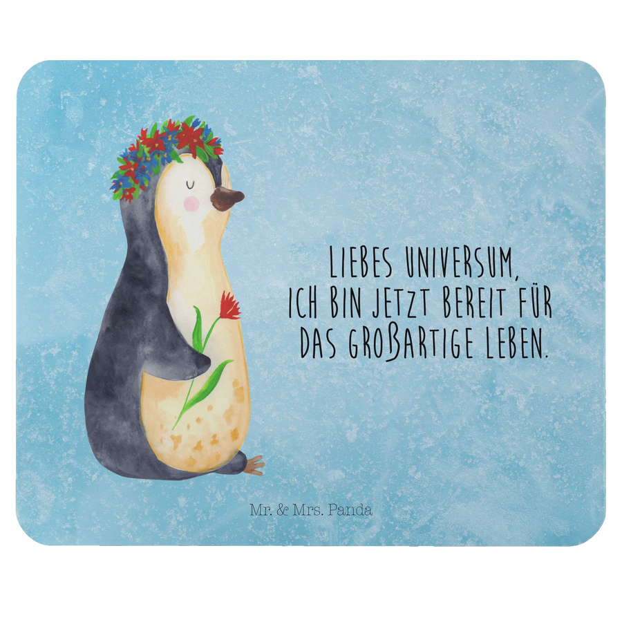 Mouse mat Penguin Flower - with a saying - Ice Blue