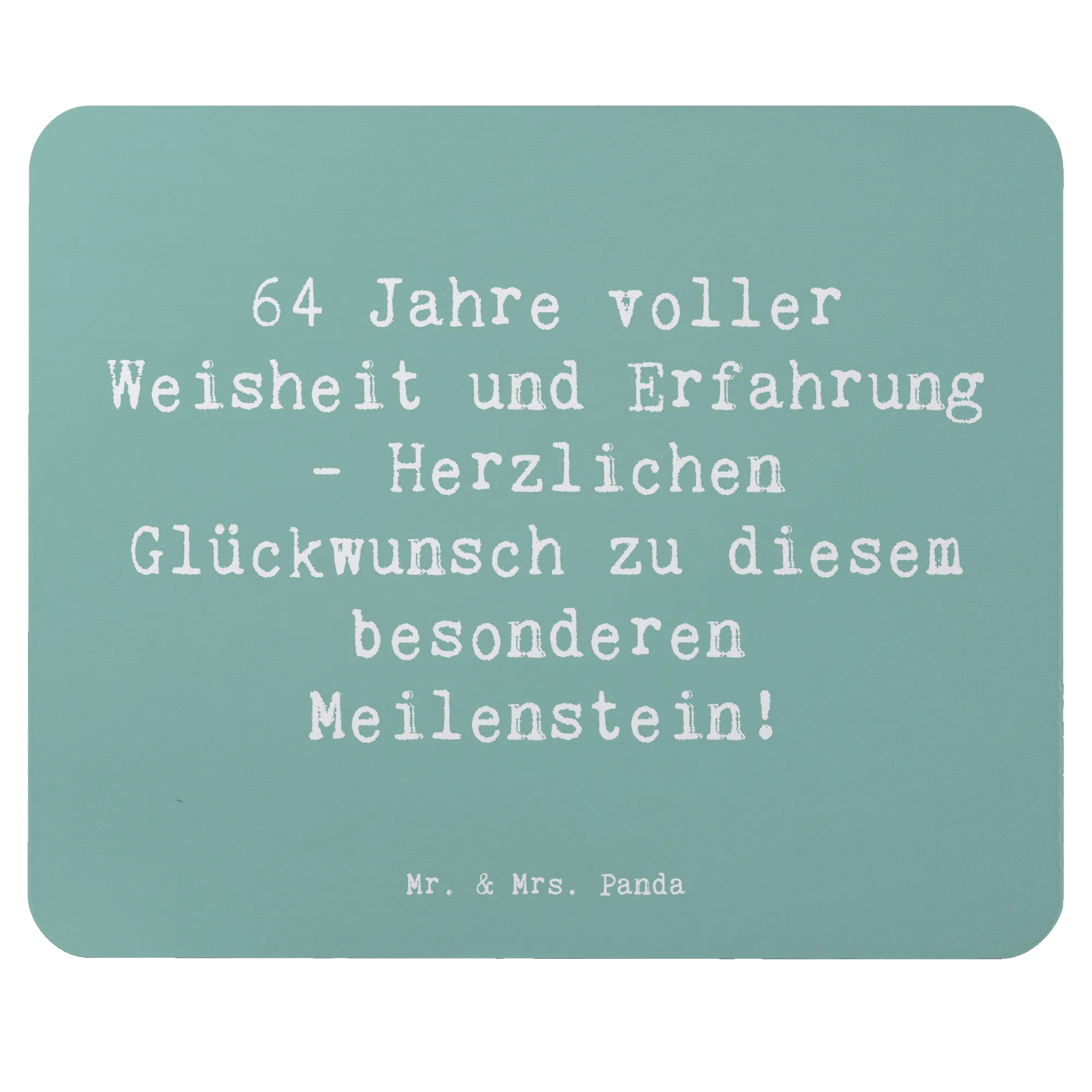 Suchst du das perfekte Geschenk zum 64. Geburtstag? Dann ist das liebevoll gestaltete Mauspad von Mr. & Mrs. Panda genau das Richtige! Mit dem Spruch „64 Jahre voller Weisheit und Erfahrung - Herzlichen Glückwunsch zu diesem besonderen Meilenstein!“ ist es nicht nur ein funktionales Computerzubehör, sondern auch ein echter Hingucker für jedes Büro oder Arbeitszimmer.