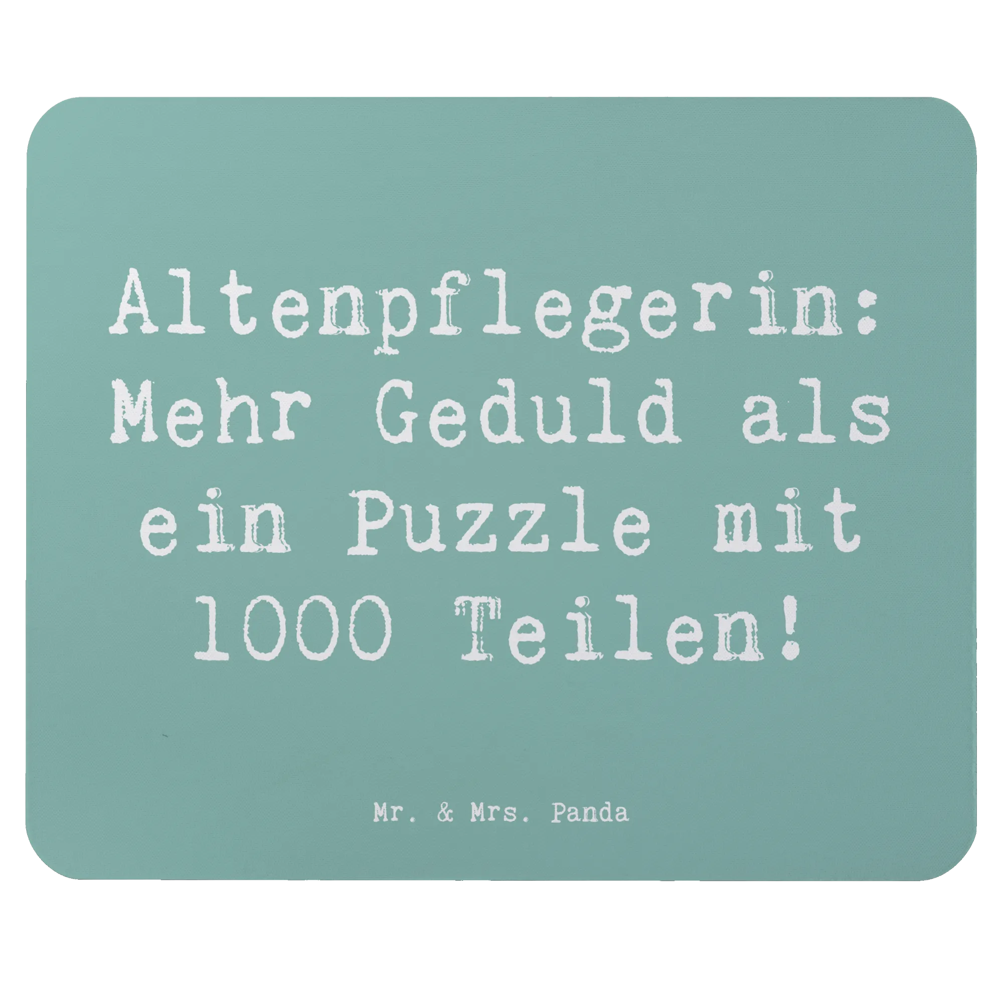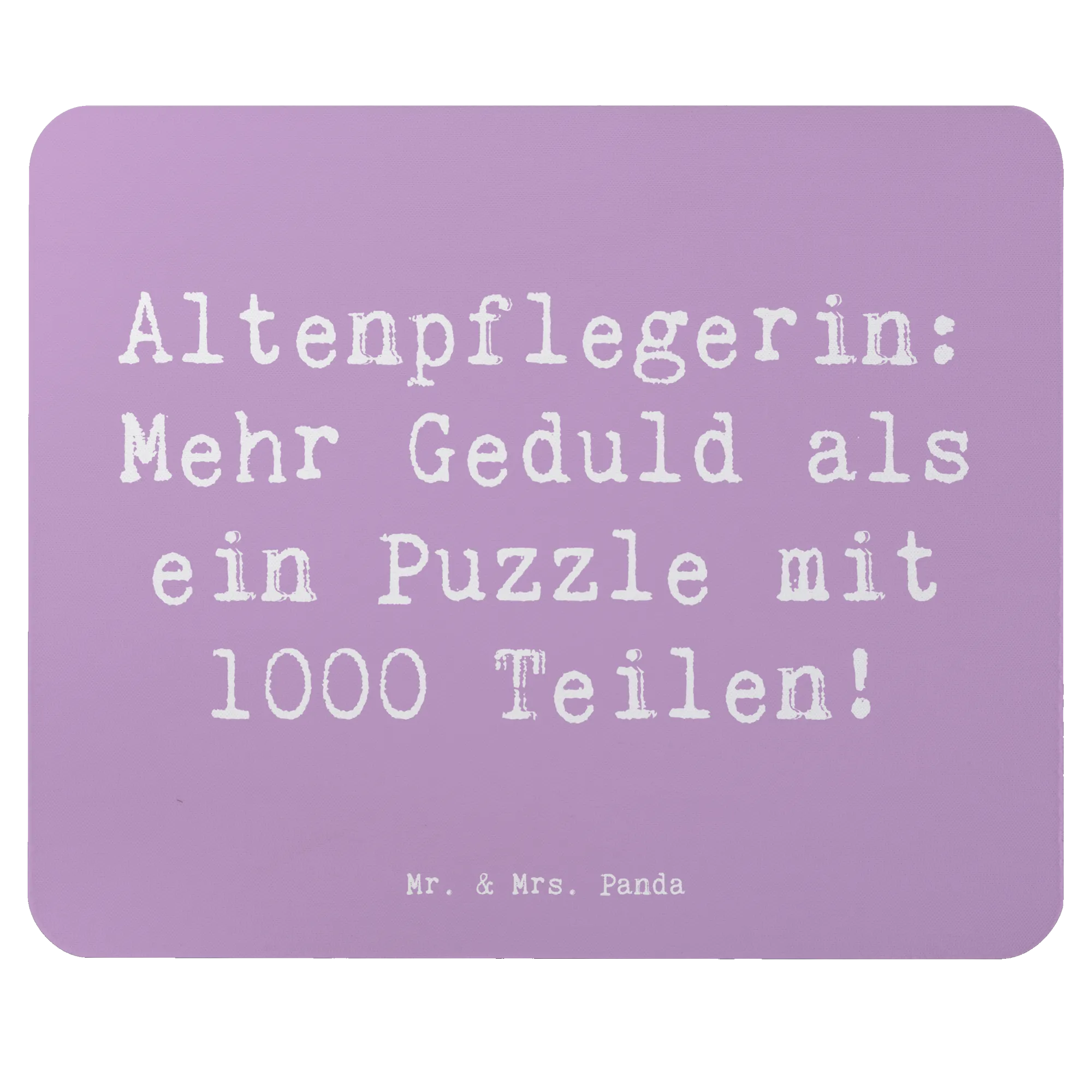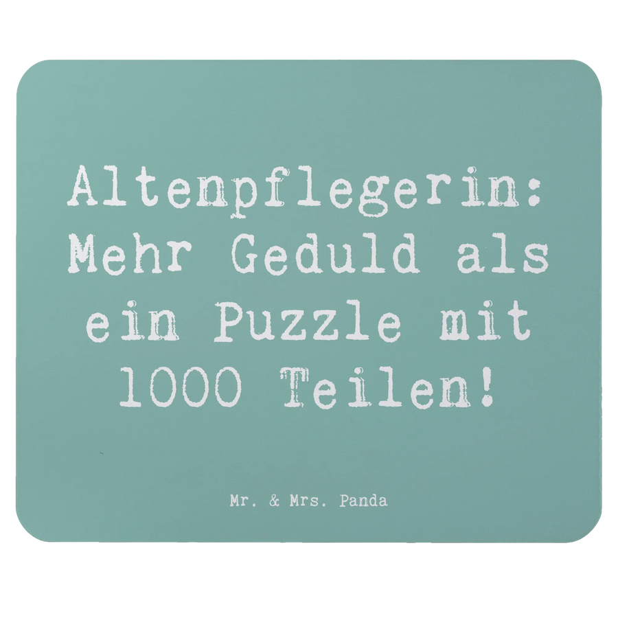 Wenn Du auf der Suche nach einem einzigartigen und praktischen Geschenk für eine Altenpflegerin bist, dann ist das Mauspad "Altenpflegerin: Mehr Geduld als ein Puzzle mit 1000 Teilen!" aus der Berufe Kollektion von Mr. & Mrs. Panda genau das Richtige für Dich.