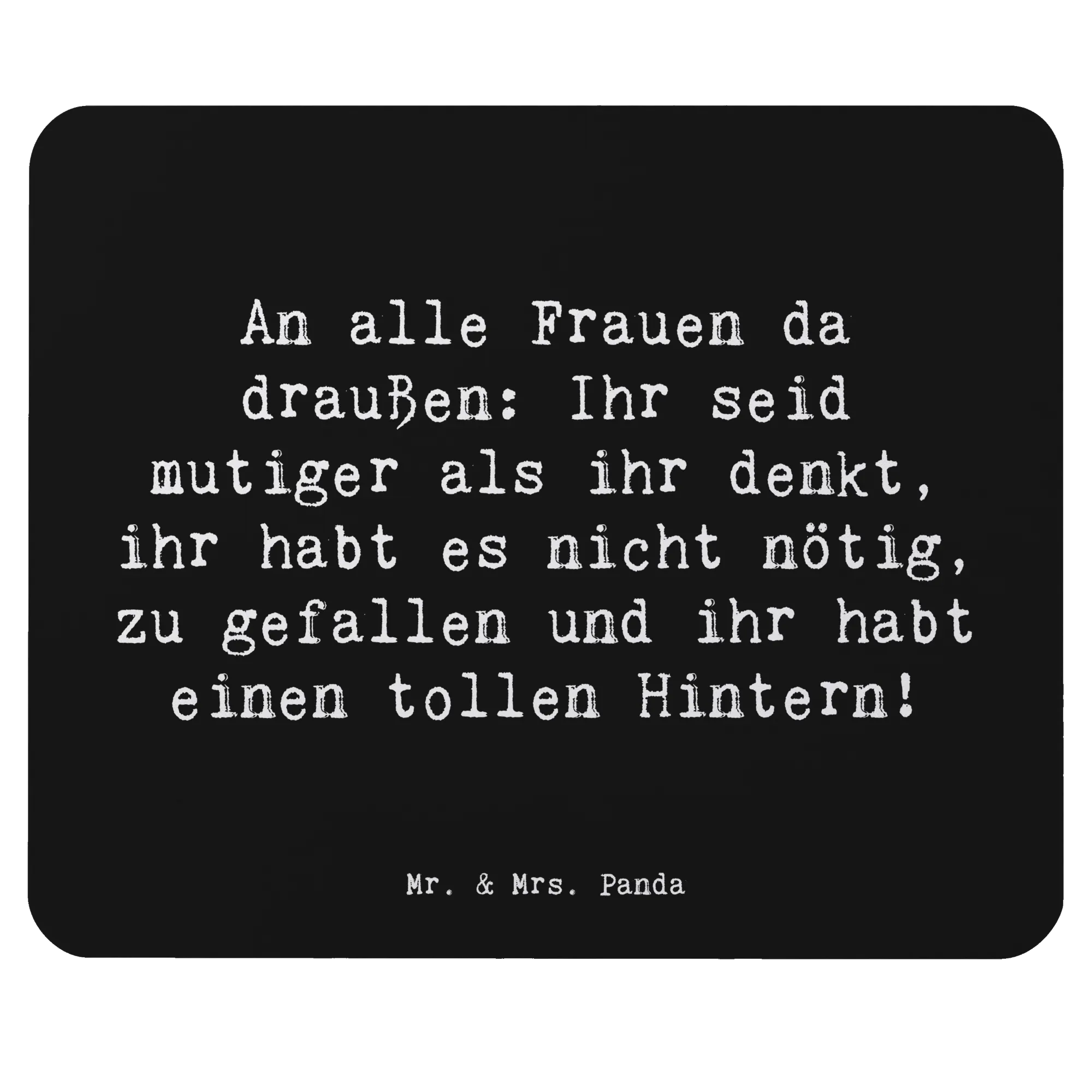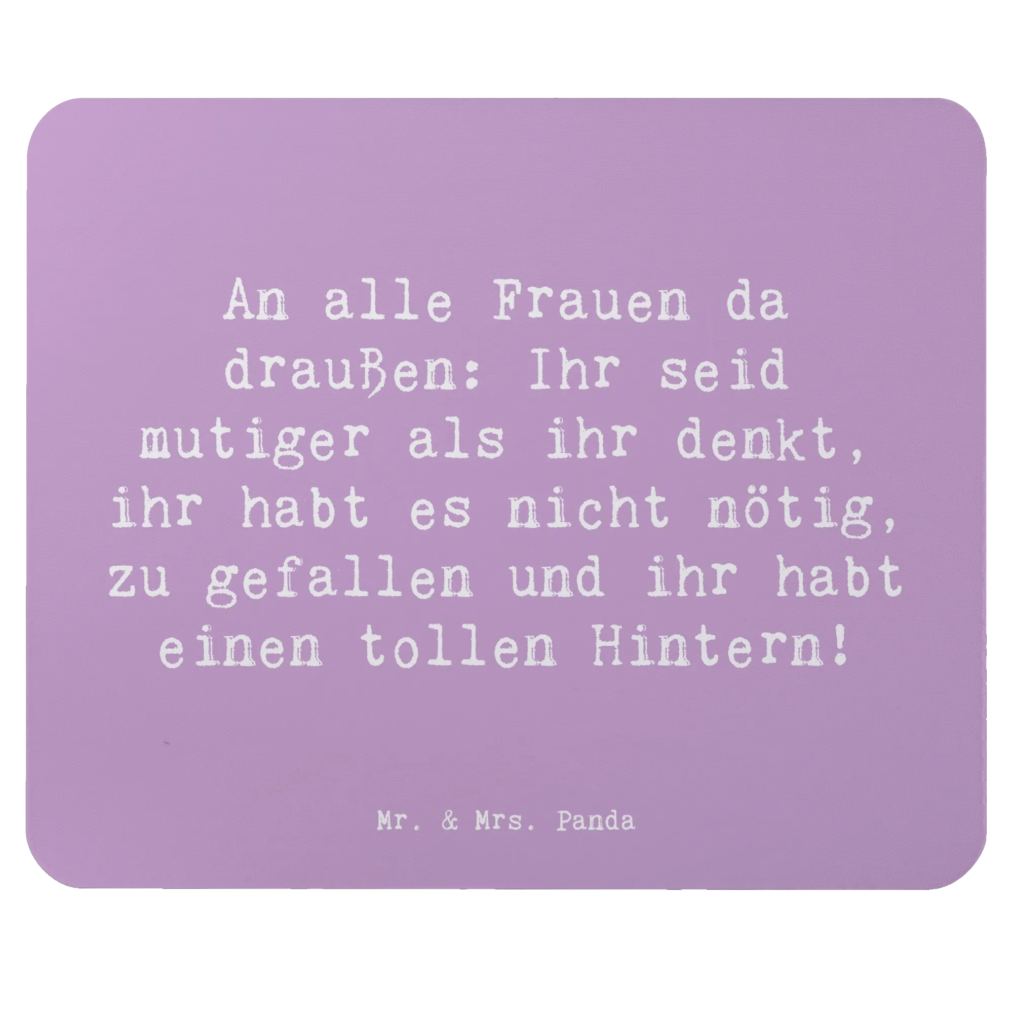Der Spruch "An alle Frauen da draußen: Ihr seid mutiger als ihr denkt, ihr habt es nicht nötig, zu gefallen und ihr habt einen tollen Hintern!" verleiht dem Mauspad eine besonders motivierende Note. Dieser positive Spruch ermutigt nicht nur zur Selbstliebe, sondern sorgt auch für ein Lächeln während der Arbeit.