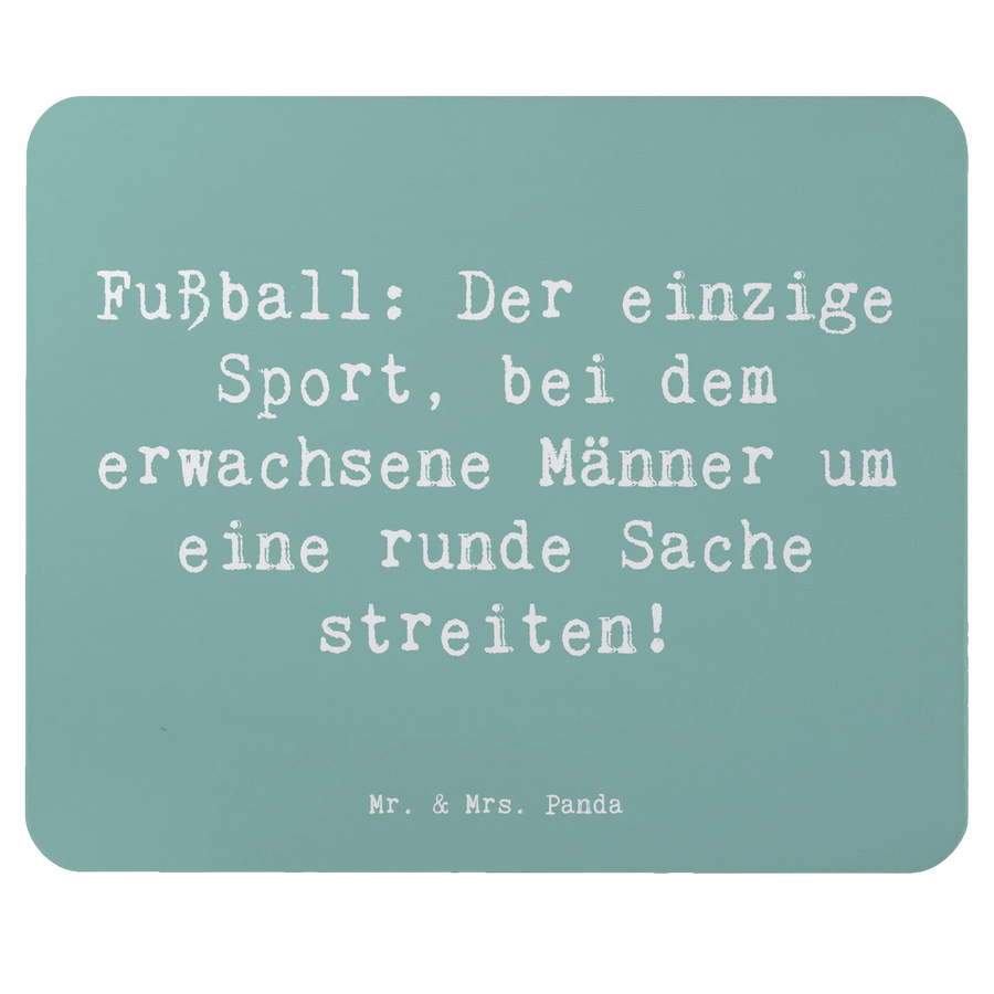 Wenn du auf der Suche nach einem besonderen Geschenk für einen Fußball-Enthusiasten bist, dann ist das Mauspad mit dem Motto "Fußball: Der einzige Sport, bei dem erwachsene Männer um eine runde Sache streiten!" von Mr. & Mrs. Panda die perfekte Wahl!