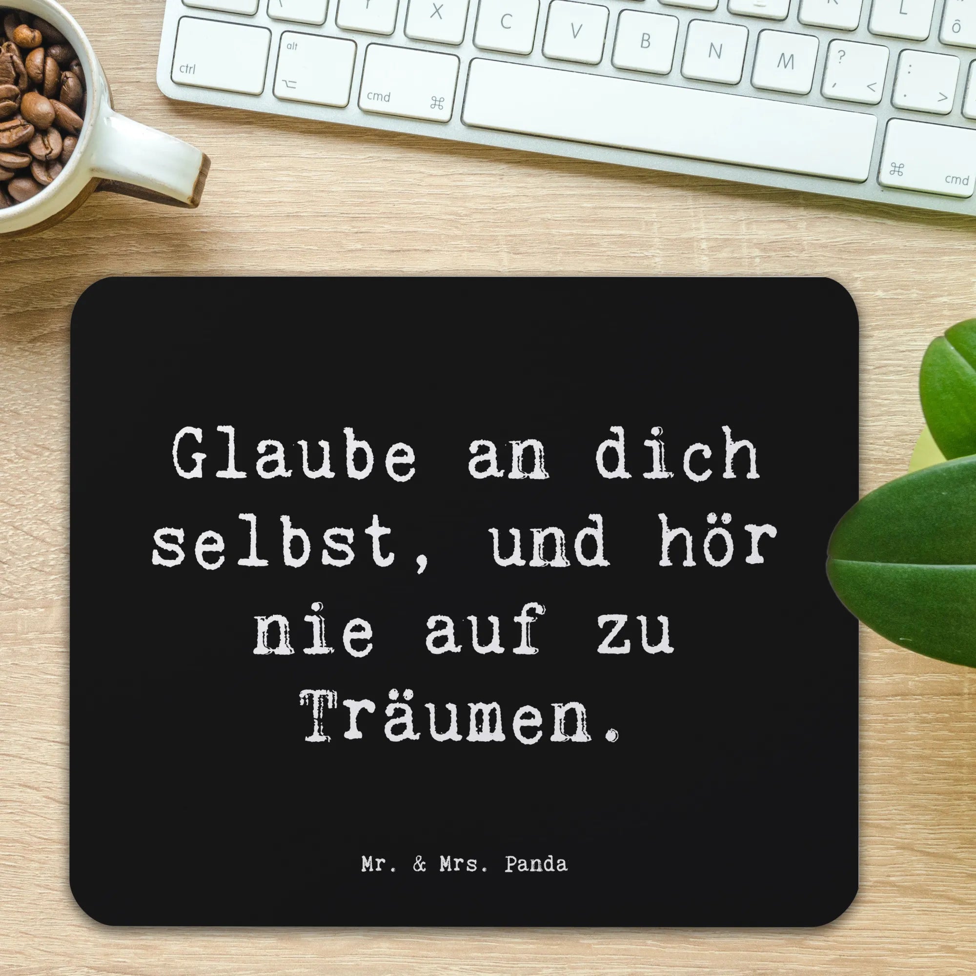 Entdecke das wundervolle Mauspad "Glaube an dich selbst" von Mr. & Mrs. Panda! Dieses einzigartige Mauspad ist nicht nur ein praktisches Computerzubehör, sondern auch eine tägliche Motivation für dein Arbeitszimmer oder Homeoffice. Mit dem inspirierenden Spruch "Glaube an dich selbst, und hör nie auf zu Träumen" bringt es jede Menge positive Energie in deinen Arbeitsalltag.