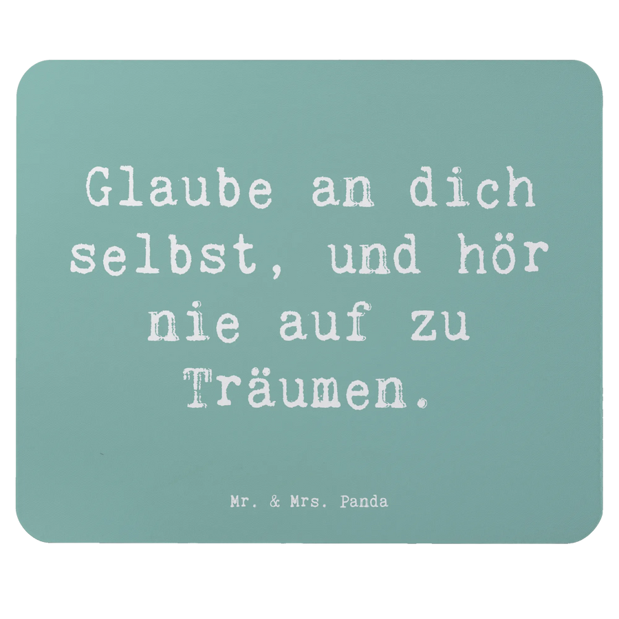 Glaube an dich selbst – Dieses liebevoll gestaltete Mauspad aus der Gefühle & Stimmungen Kollektion von Mr. & Mrs. Panda ist mehr als nur Computer Zubehör. Der beruhigende Meeresbrise-Hintergrund und der inspirierende Spruch „Glaube an dich selbst, und hör nie auf zu Träumen.“ schenken Dir bei jeder Bewegung am PC einen kleinen Motivationsschub. 😊
