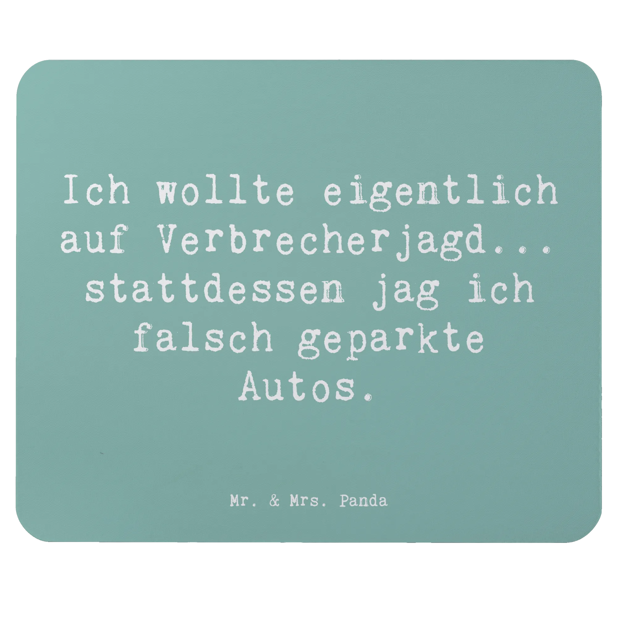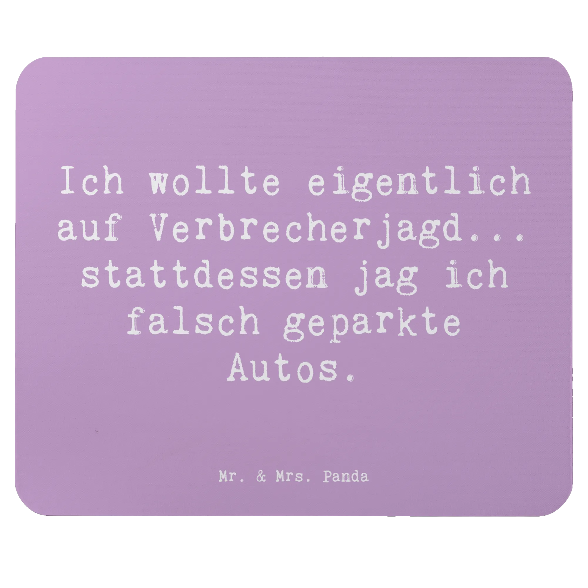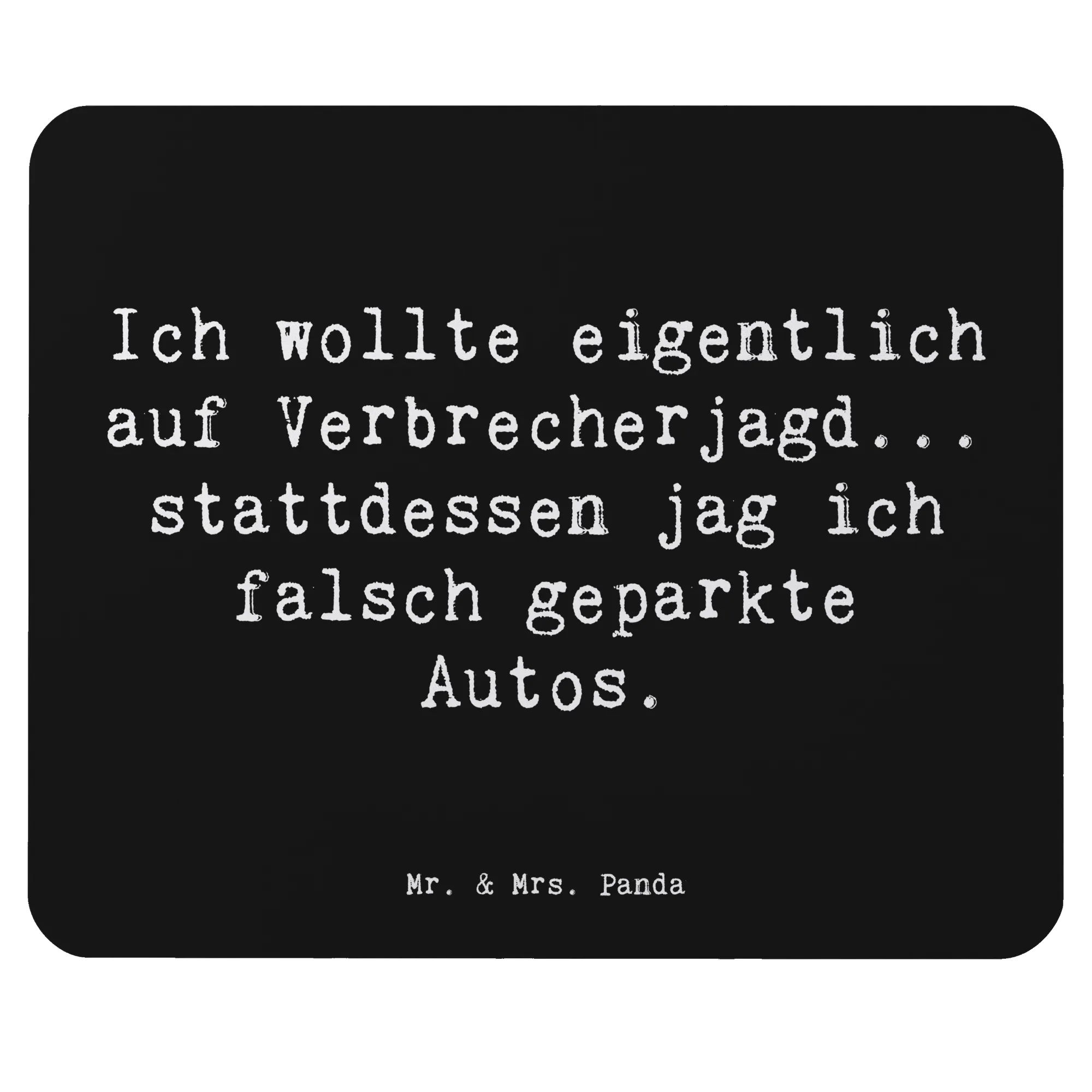 Suchst du nach einem originellen Geschenk für einen Polizisten oder einfach für jemanden, der in einer ähnlichen Branche arbeitet? Dann ist das Mauspad mit dem witzigen Motiv "Ich wollte eigentlich auf Verbrecherjagd... stattdessen jag ich falsch geparkte Autos." von Mr. & Mrs. Panda genau das richtige für dich!