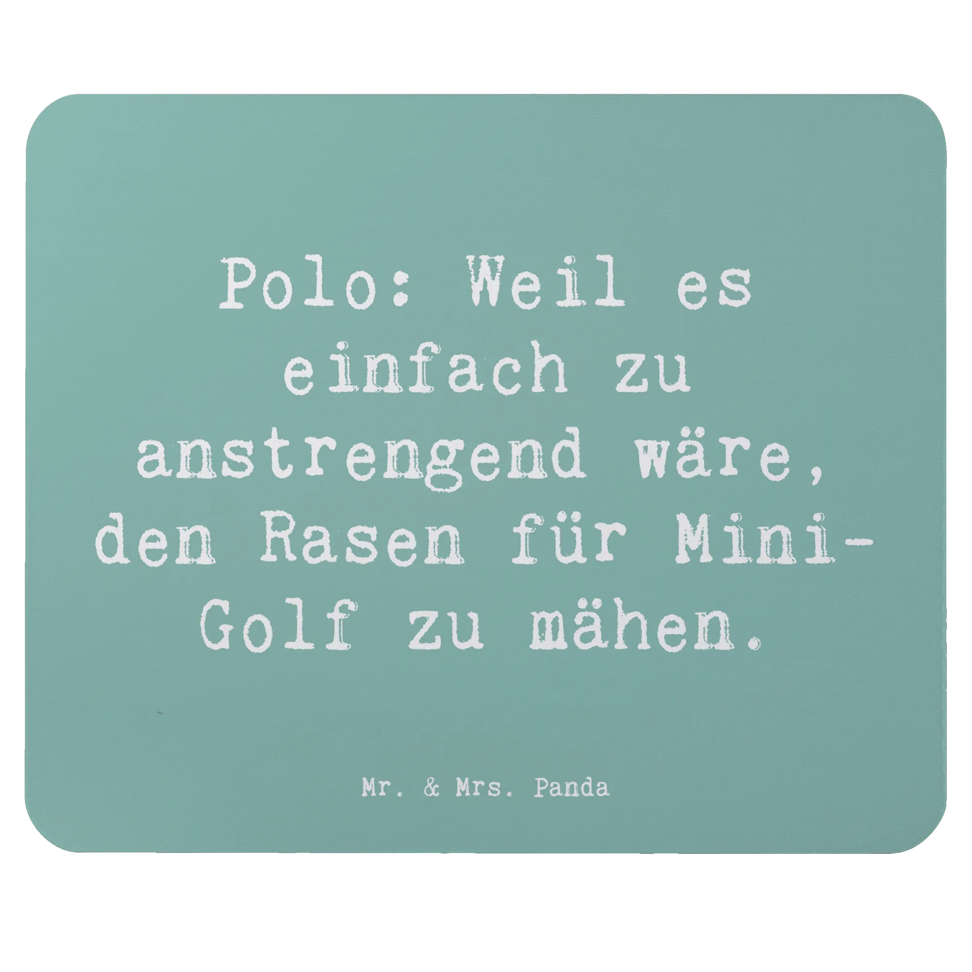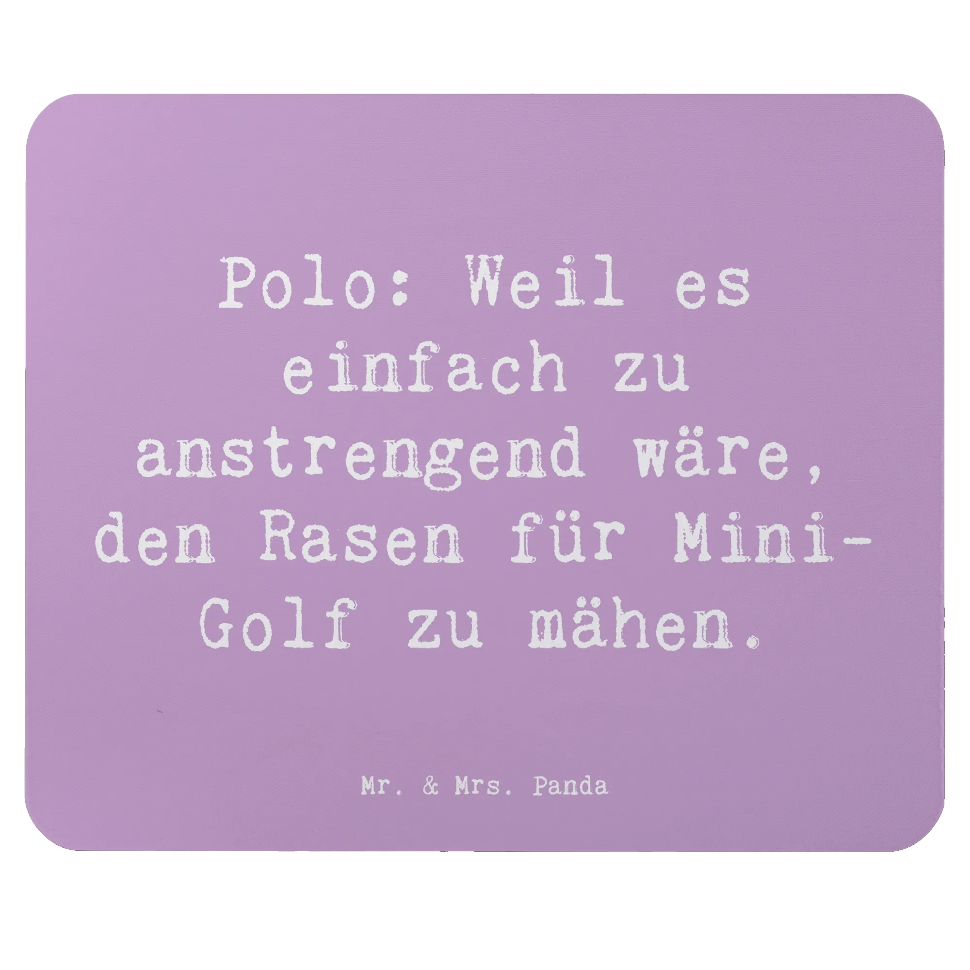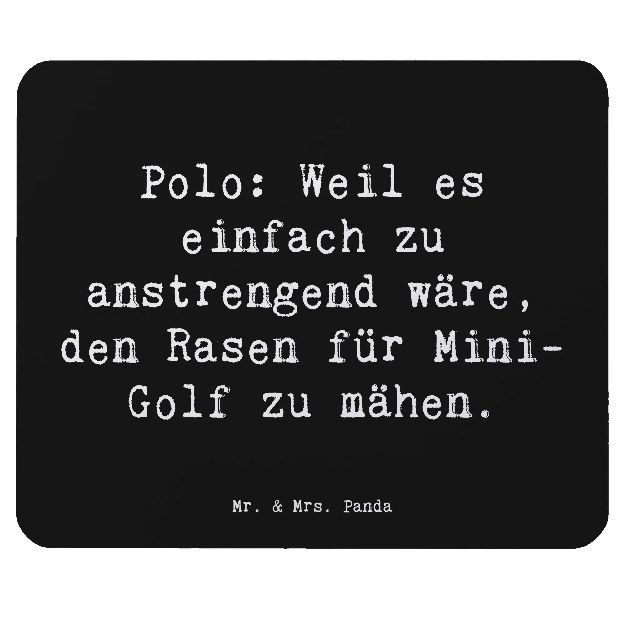 Entdecke unser einzigartiges Mauspad mit dem charmanten Motiv "Polo: Weil es einfach zu anstrengend wäre, den Rasen für Mini-Golf zu mähen." von Mr. & Mrs. Panda! Dieses stylische Mauspad ist nicht nur ein echter Hingucker, sondern auch extrem funktional und perfekt für deinen Arbeitsalltag oder das Homeoffice.
