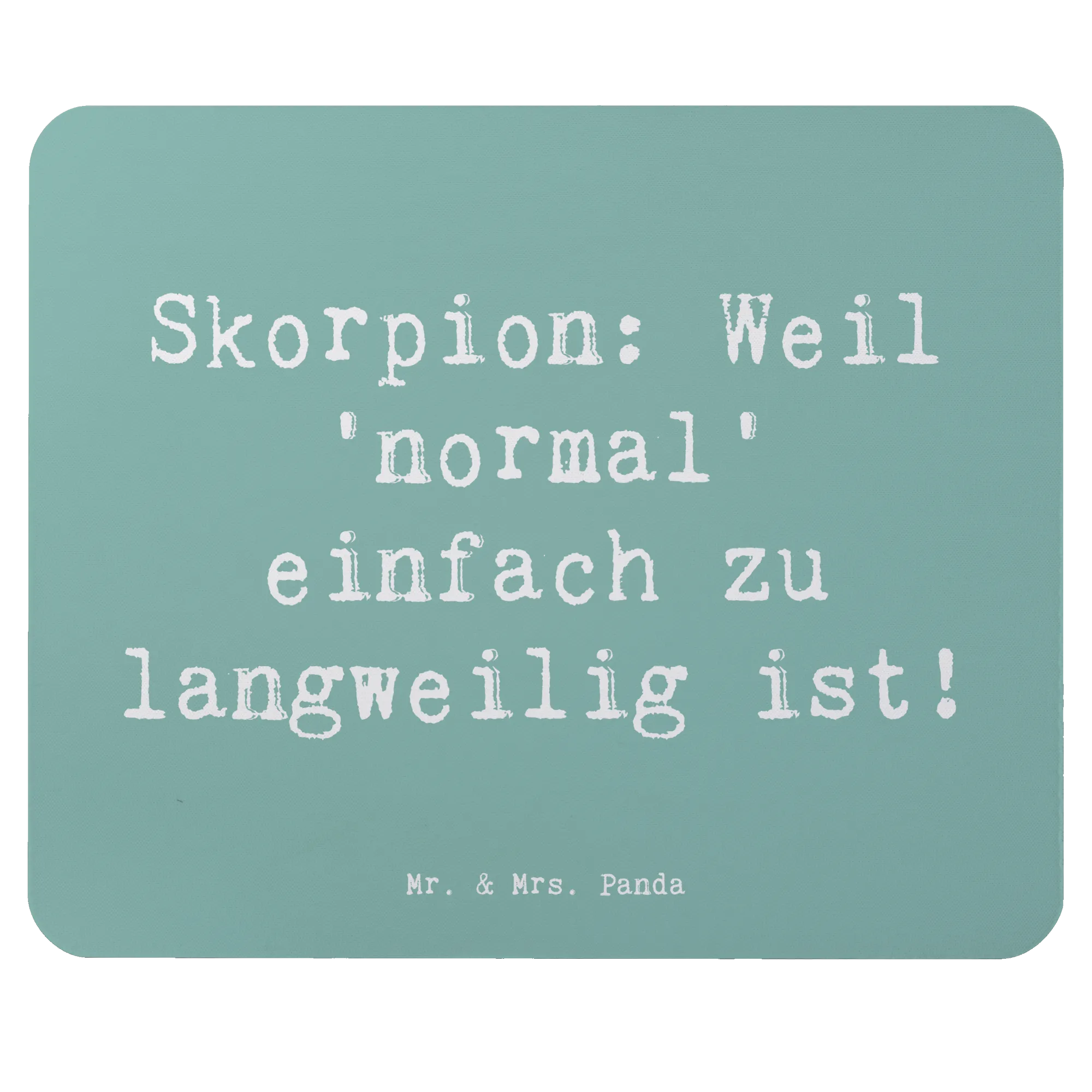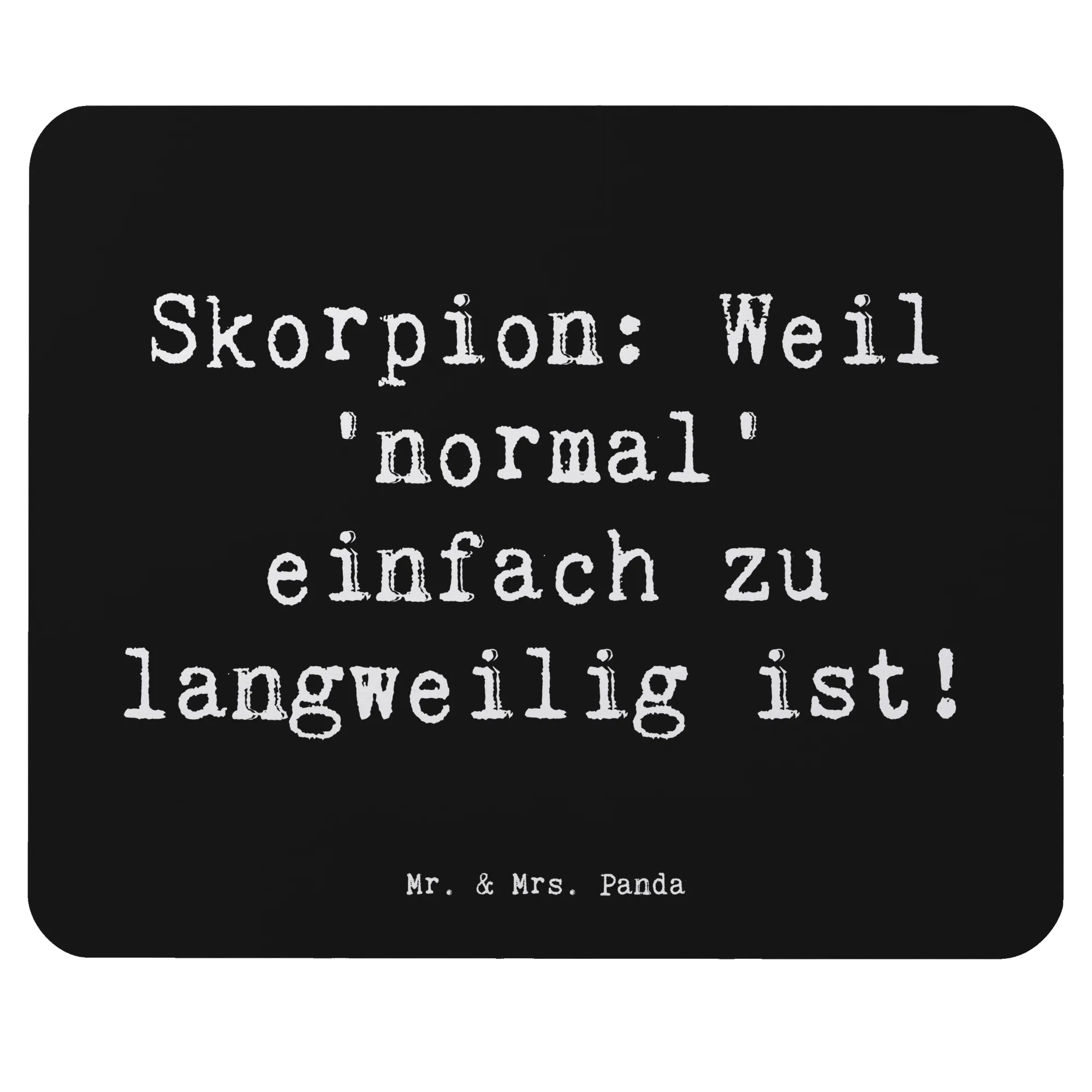 Das Mauspad Skorpion von Mr. & Mrs. Panda ist das perfekte Geschenk für alle, die unter dem Sternzeichen Skorpion geboren sind oder einfach die faszinierende Welt der Astrologie lieben. Mit dem liebevollen Slogan „Skorpion: Weil 'normal' einfach zu langweilig ist!“ bringt dieses Mauspad die individuelle Persönlichkeit und die besonderen Eigenschaften des Skorpions direkt auf deinen Schreibtisch.
