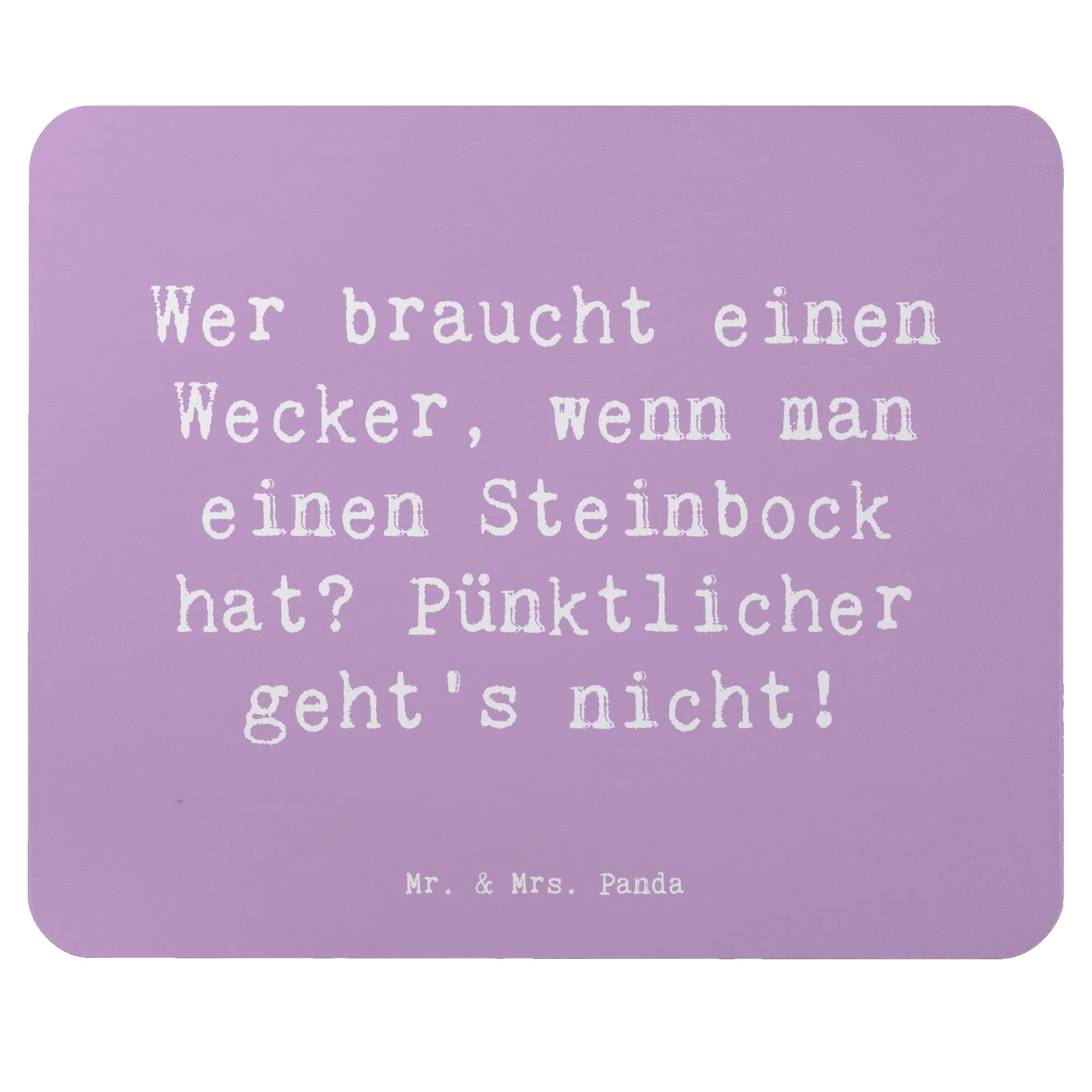 Bist du auf der Suche nach dem perfekten Geschenk für einen Steinbock-Fan? Dann ist das Mauspad mit dem lustigen Spruch "Wer braucht einen Wecker, wenn man einen Steinbock hat? Pünktlicher geht's nicht!" von Mr. & Mrs. Panda genau das Richtige! Es handelt sich um ein einzigartiges Mauspad, das nicht nur funktional ist, sondern auch die besonderen Eigenschaften des Sternzeichens Steinbock liebevoll in den Fokus rückt.