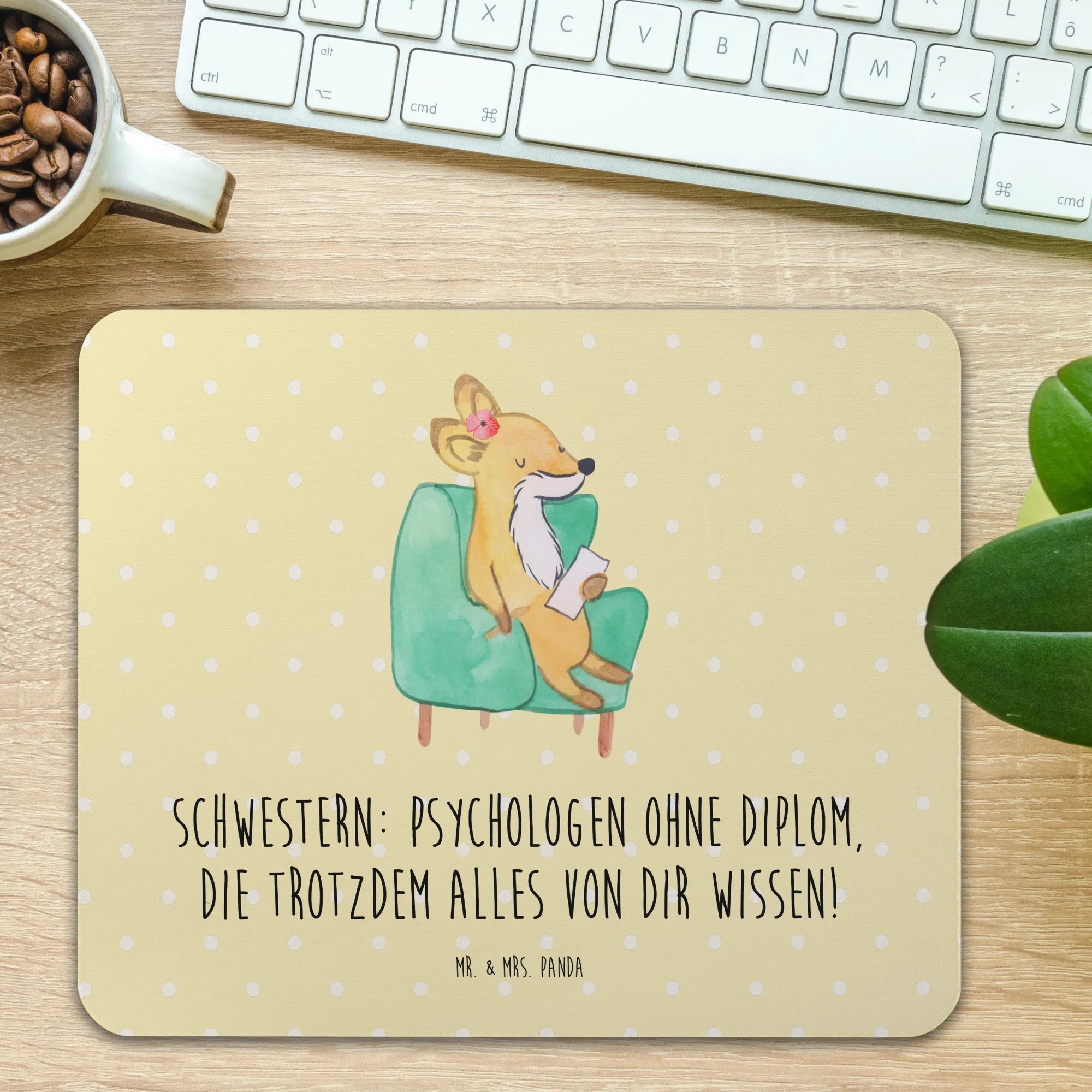 Entdecke das bezaubernde Mauspad "Schwester" von Mr. & Mrs. Panda! Dieses einzigartige Mauspad aus hochwertigem Zellkautschuk ist nicht nur ein echtes Schmuckstück für Deinen Schreibtisch, sondern auch ein gefühlvolles Geschenk für die beste Schwester der Welt! Egal ob für das Homeoffice oder das Büro – mit dem hübschen Design und dem herzlichen Spruch „Schwestern: Psychologen ohne Diplom, die trotzdem alles von dir wissen!“ zaubert dieses Mauspad jedem ein Lächeln ins Gesicht.