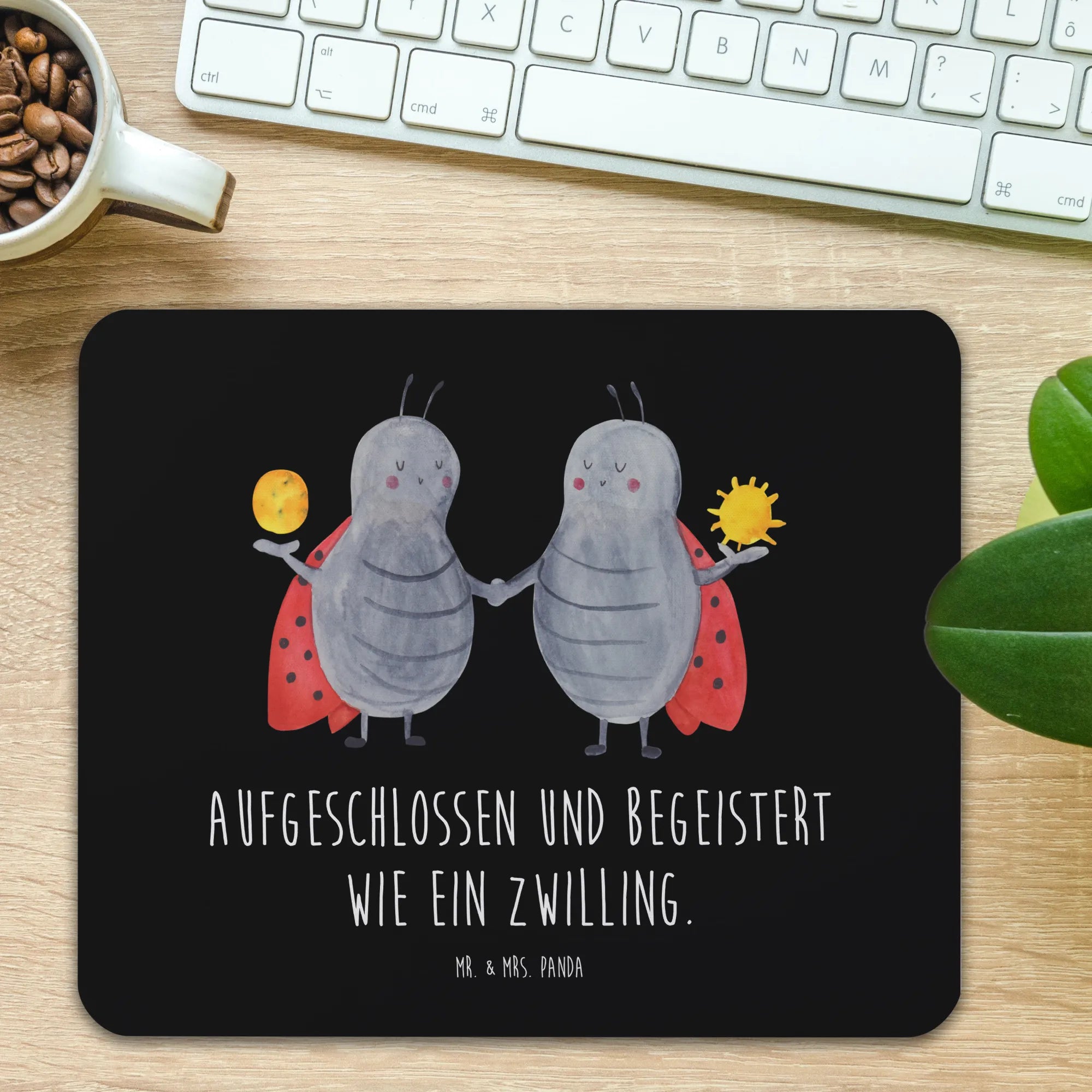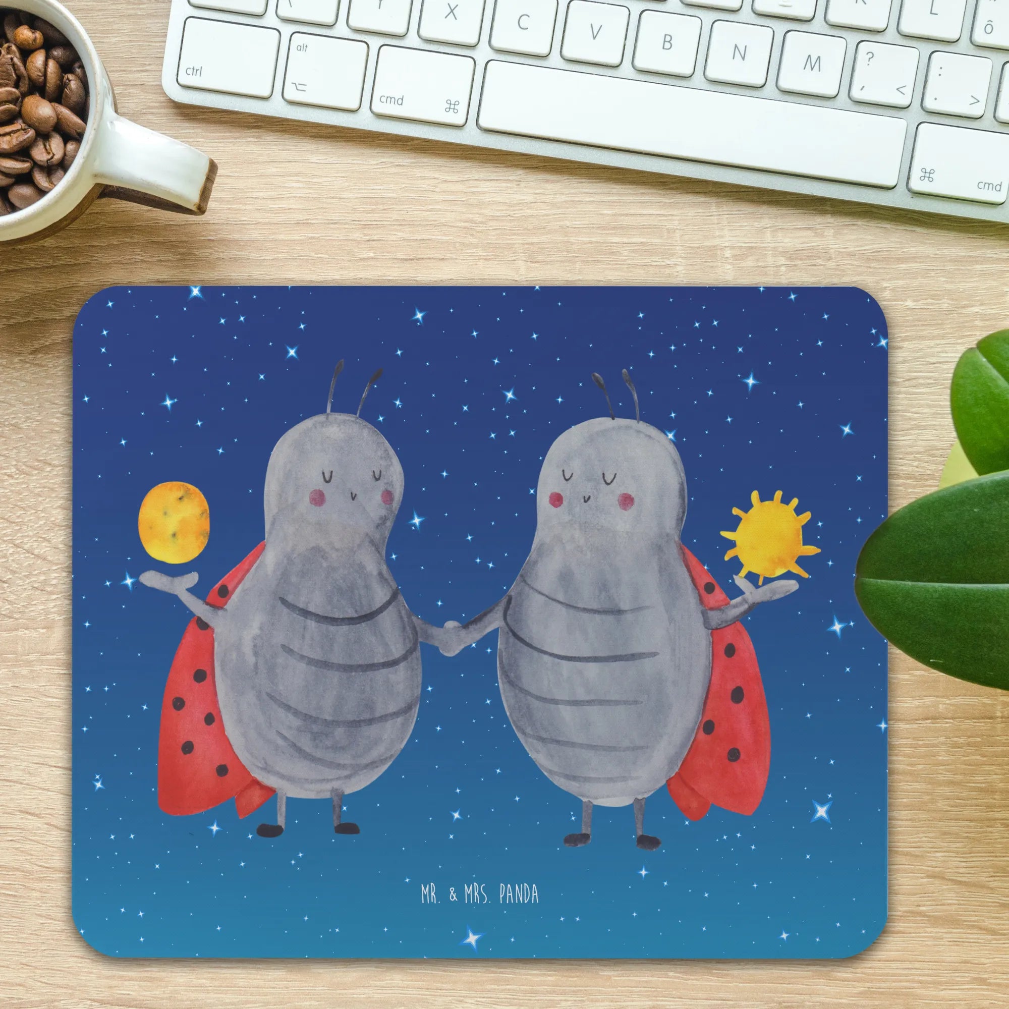 Are you searching for the perfect gift for a twin or someone whose zodiac sign is Gemini? Look no further than our delightful mouse pad featuring the enchanting motif of the star sign Gemini, crafted with love by Mr. & Mrs. Panda. This charming mouse mat is more than just a functional accessory; it’s an expression of individuality that celebrates the charming traits of twins. With cute ladybugs frolicking across a starry sky background, it captures the essence of Gemini—open-mindedness, enthusiasm, and the joy of companionship.