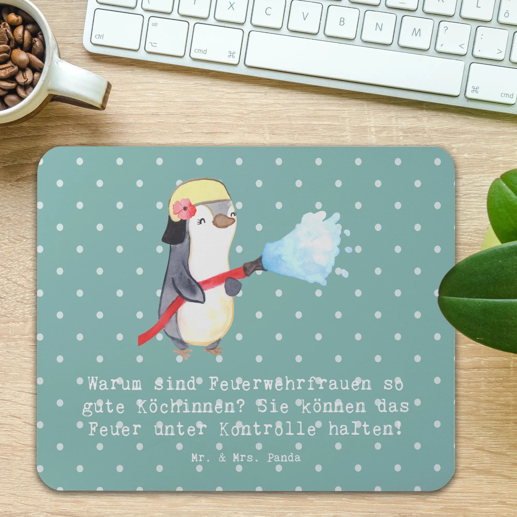 Das perfekte Mauspad für alle Feuerwehr- und Küchenliebhaber! Willkommen in der bunten Welt von Mr. & Mrs. Panda! Hier stellen wir dir unser einzigartiges Mauspad mit dem beliebten Motiv Feuerwehrfrau vor, das nicht nur funktional ist, sondern auch für Lächeln sorgt! Mit dem witzigen Slogan „Warum sind Feuerwehrfrauen so gute Köchinnen? Sie können das Feuer unter Kontrolle halten!“ bringt es eine fröhliche Note in dein Homeoffice oder deinen Arbeitsplatz.