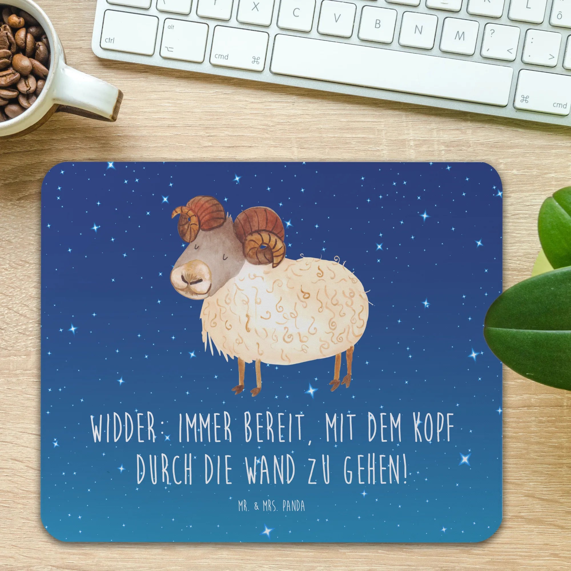 Mauspad mit dem Motiv "Widder: Immer bereit, mit dem Kopf durch die Wand zu gehen!" – das perfekte Geschenk für alle, die im Sternzeichen Widder geboren sind oder einfach die Leidenschaft der Astrologie leben! Dieses zauberhafte Mauspad von Mr. & Mrs. Panda bringt nicht nur Farbe und Freude in dein Arbeitszimmer, sondern ist auch ein funktionales Must-Have für jeden PC-Nutzer. Es bietet eine angenehme, handgelenkschonende Oberfläche, die dir stundenlanges Arbeiten am Computer ermöglicht, ohne dass deine Hand ermüdet. Durch die rutschfeste Unterseite bleibt das Mauspad stets an seinem Platz, egal wie hektisch der Arbeitsalltag wird.