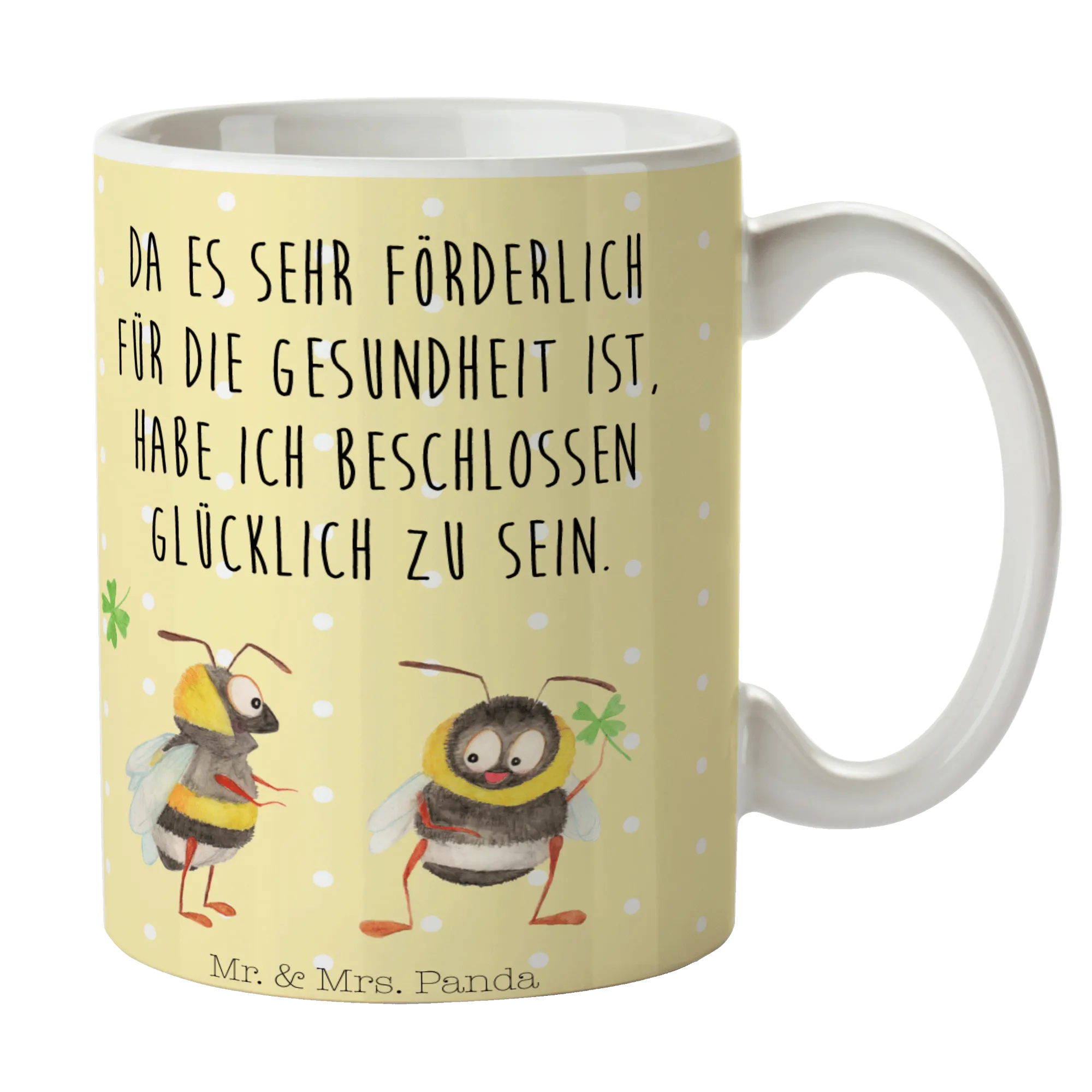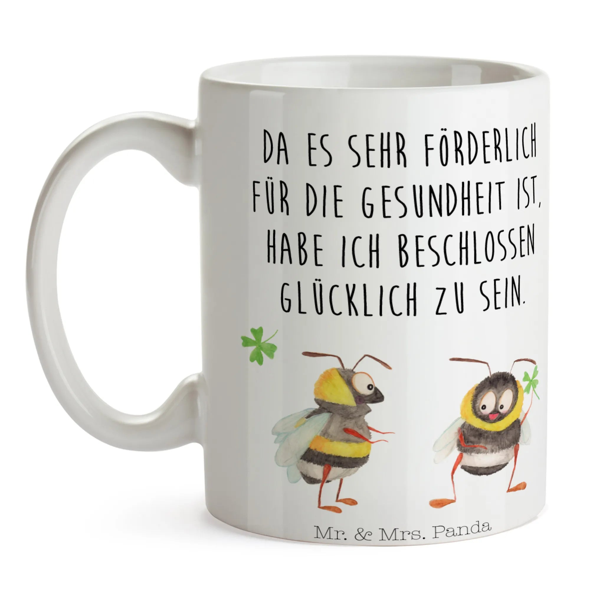 Mug bumblebees shamrock - with a saying - Ceramics - White