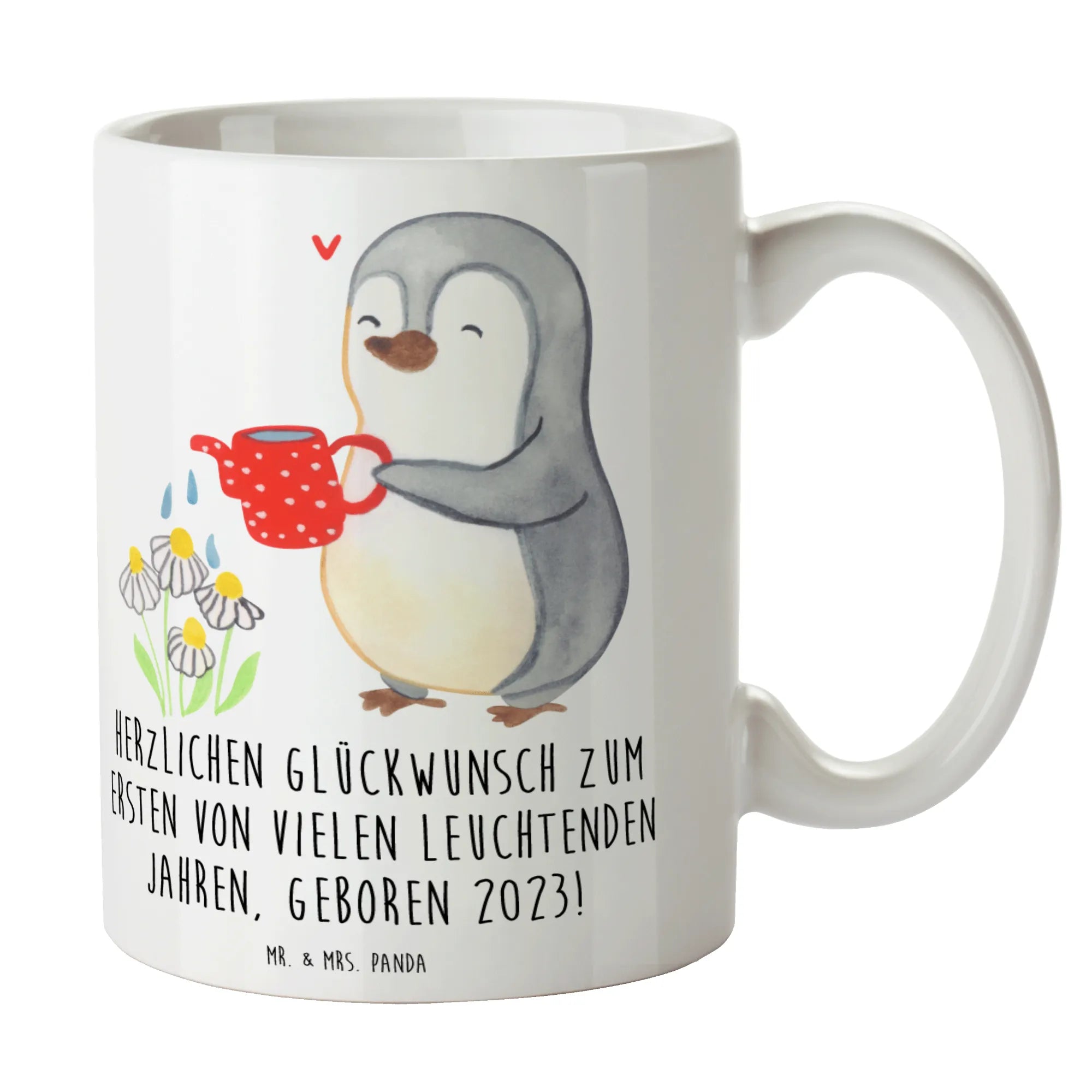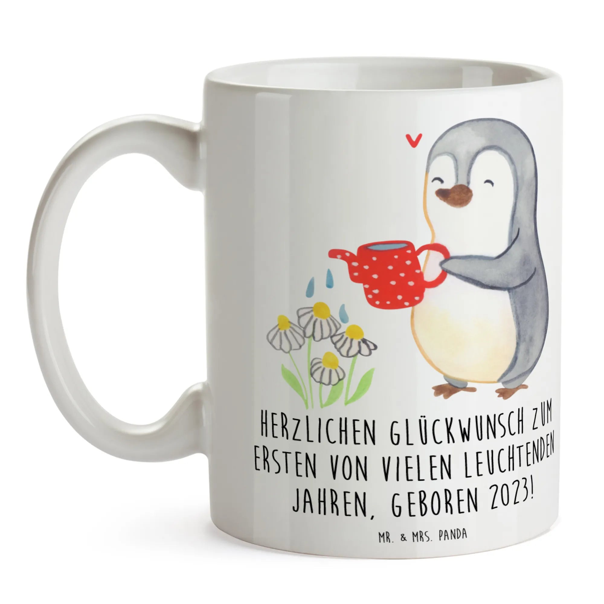 Mug Herzlichen Glückwunsch zum ersten von vielen leuchtenden Jahren, geboren 2023!