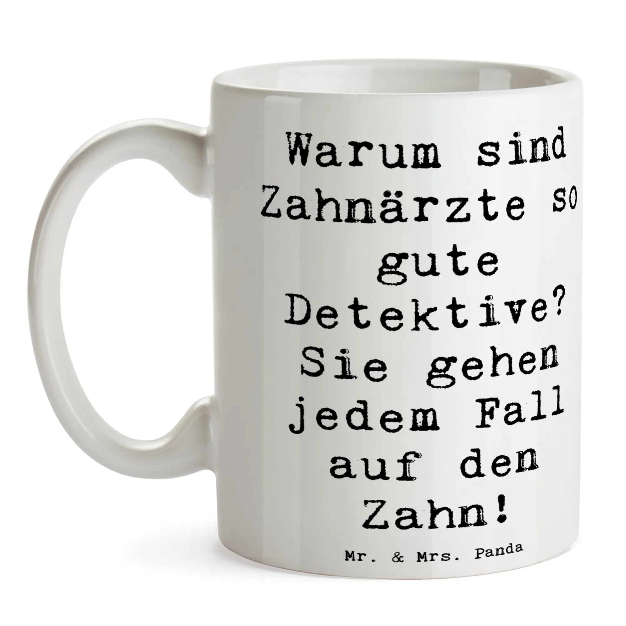 Mug Saying Warum sind Zahnärzte so gute Detektive? Sie gehen jedem Fall auf den Zahn! - White