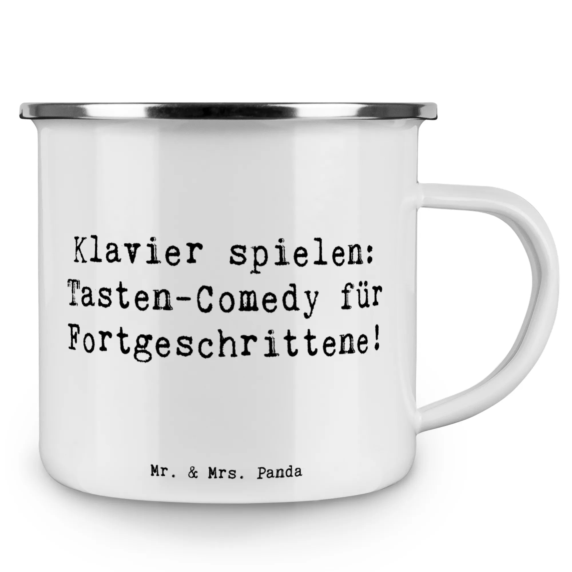 Enamel camping mug Saying Klavier spielen: Tasten-Comedy für Fortgeschrittene!