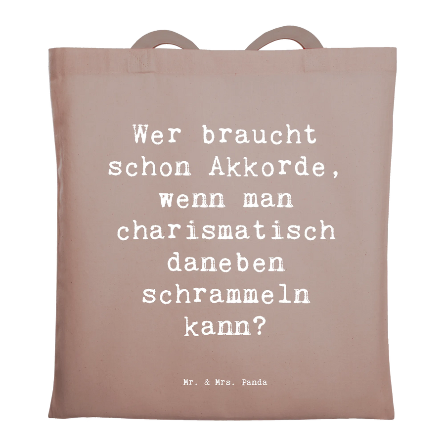 Tote bag Saying Wer braucht schon Akkorde, wenn man charismatisch daneben schrammeln kann? - Pastel Brown
