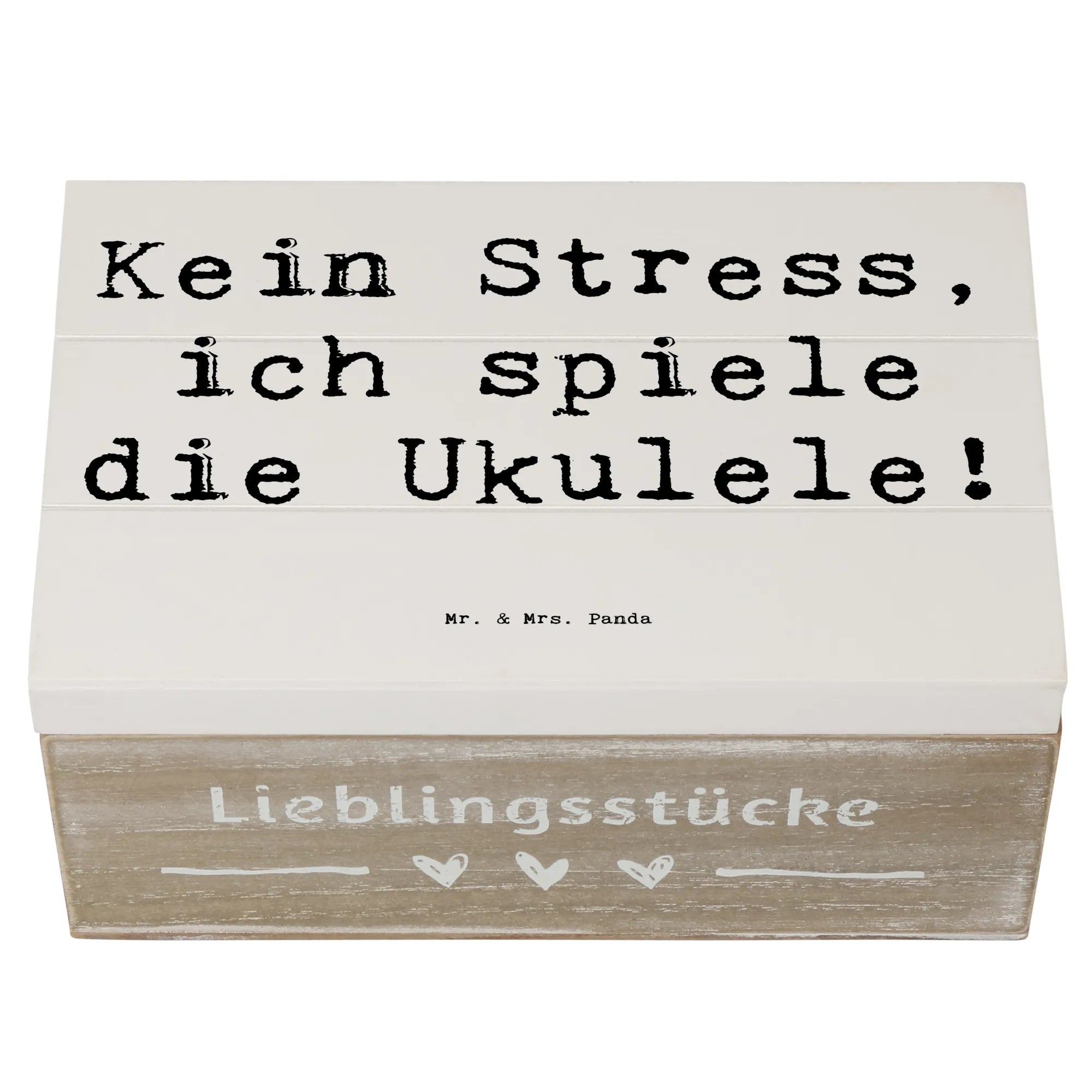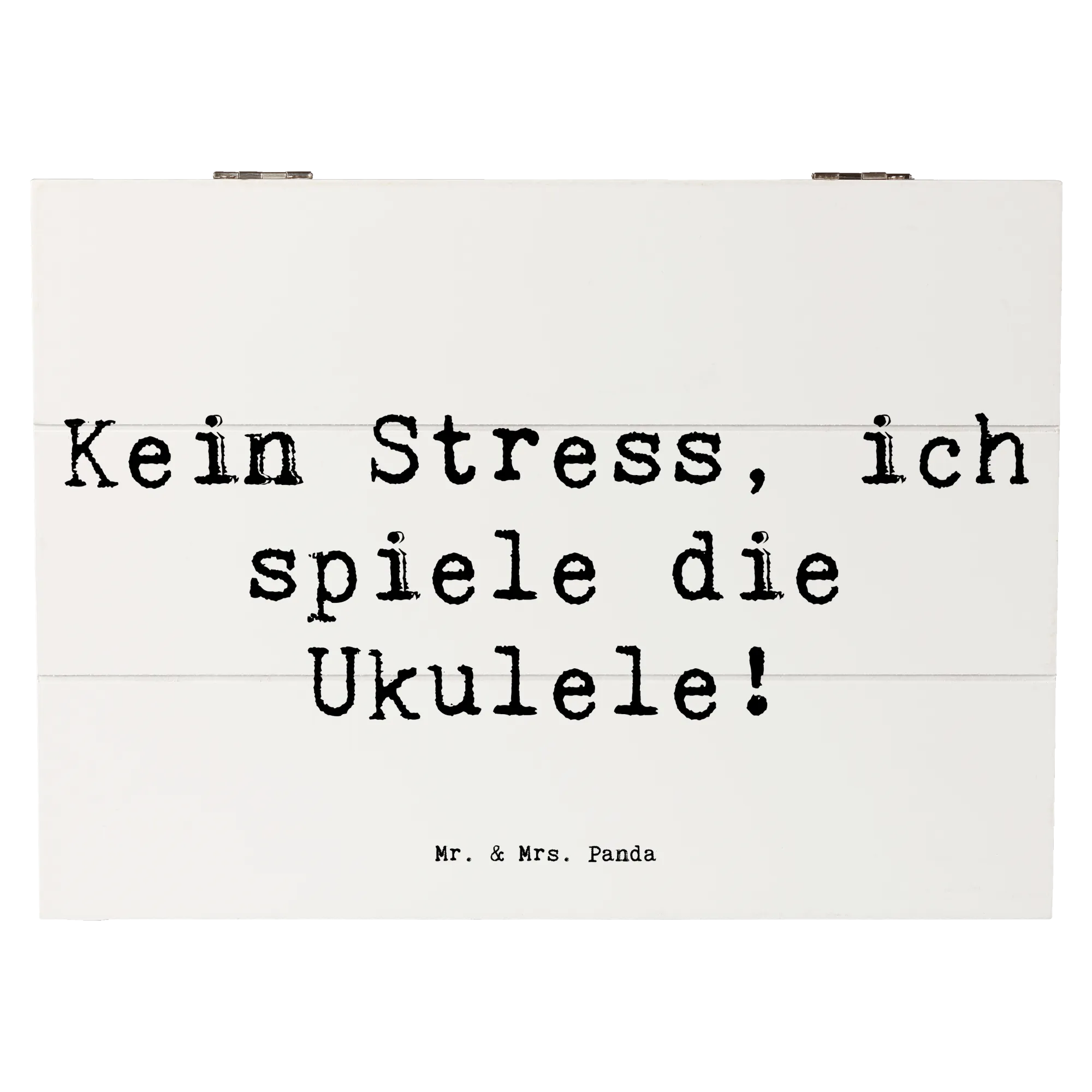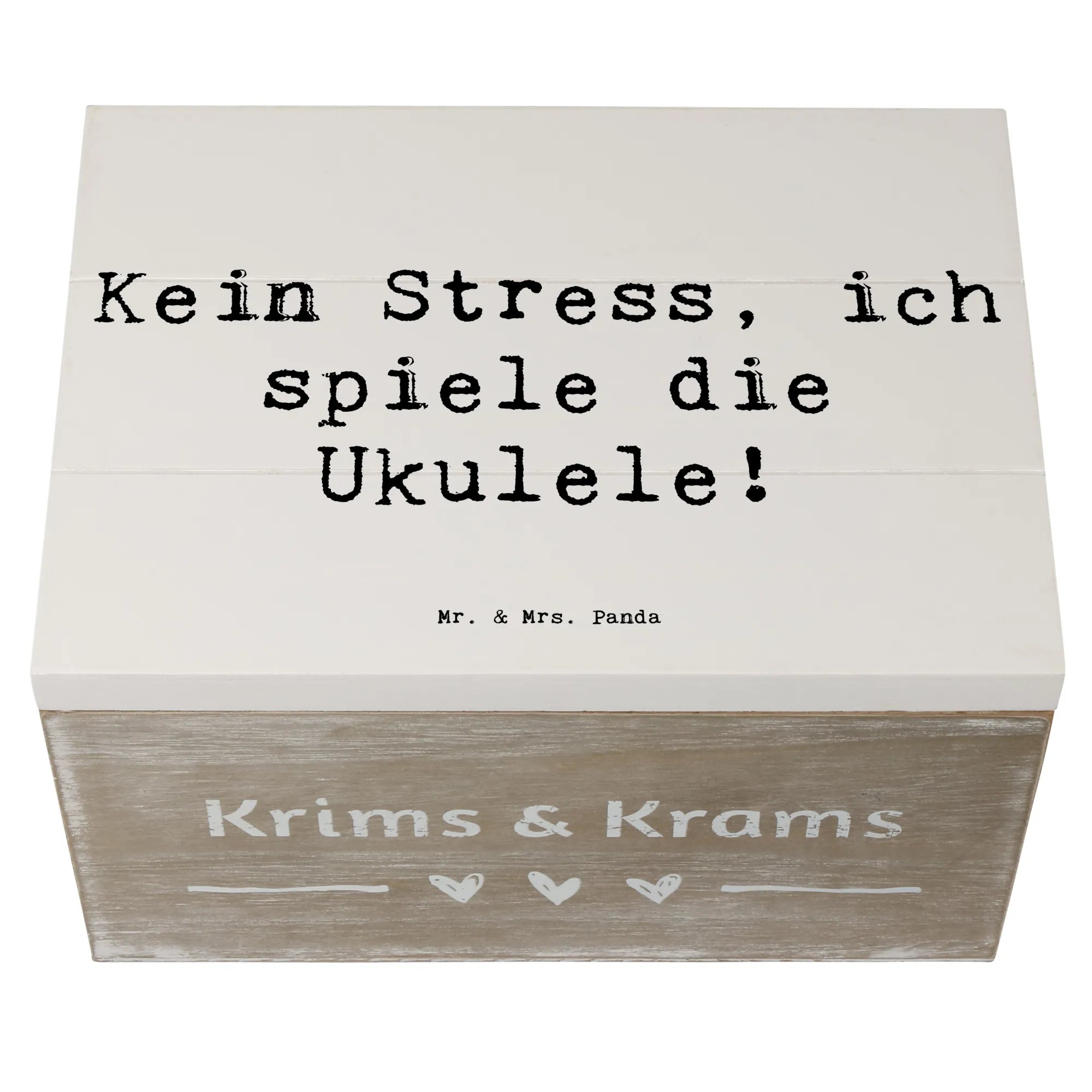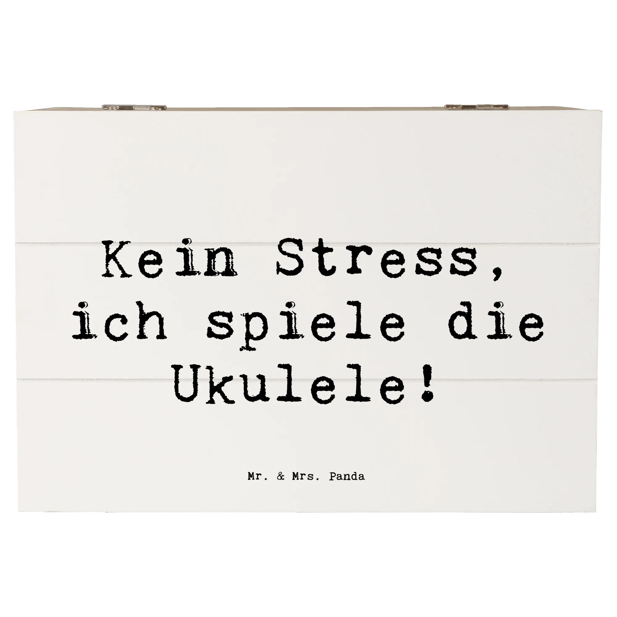 Wooden chest Saying Kein Stress, ich spiele die Ukulele! - 22 x 15 cm - White