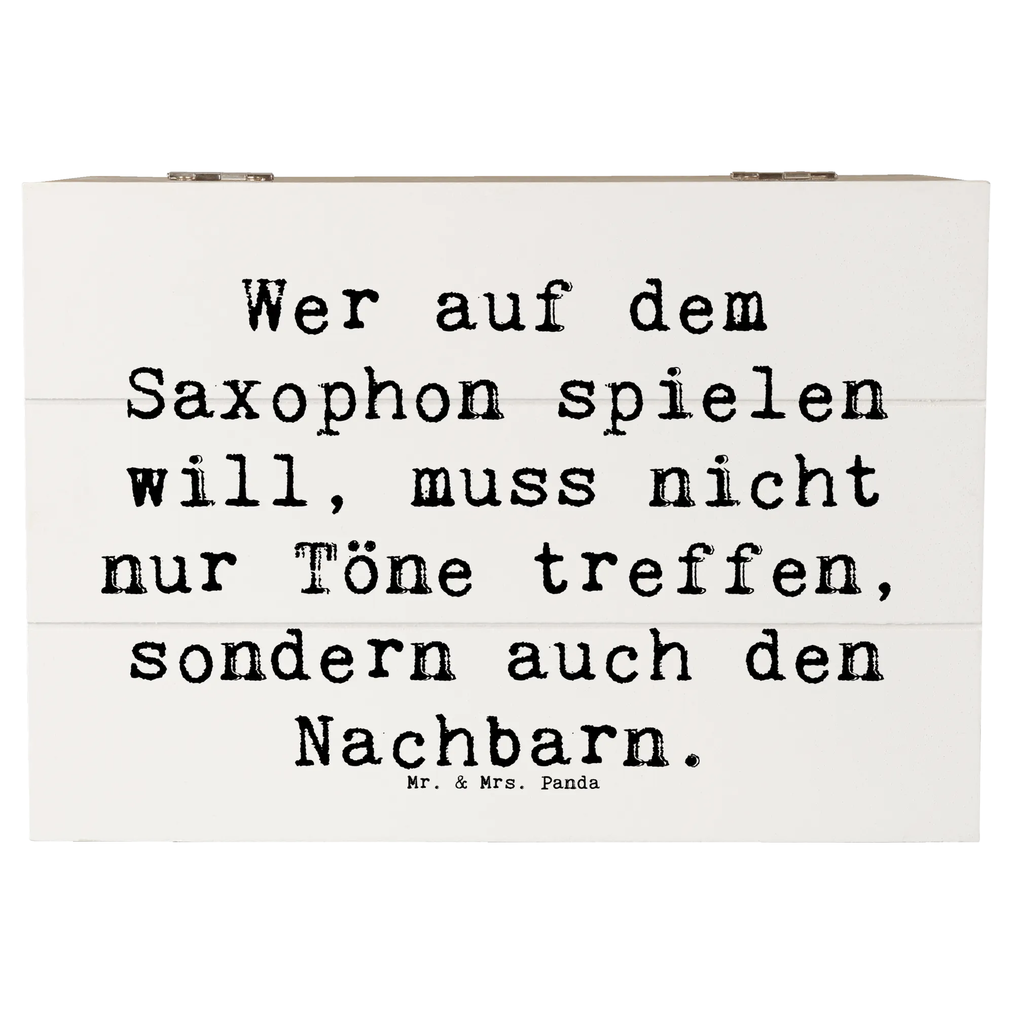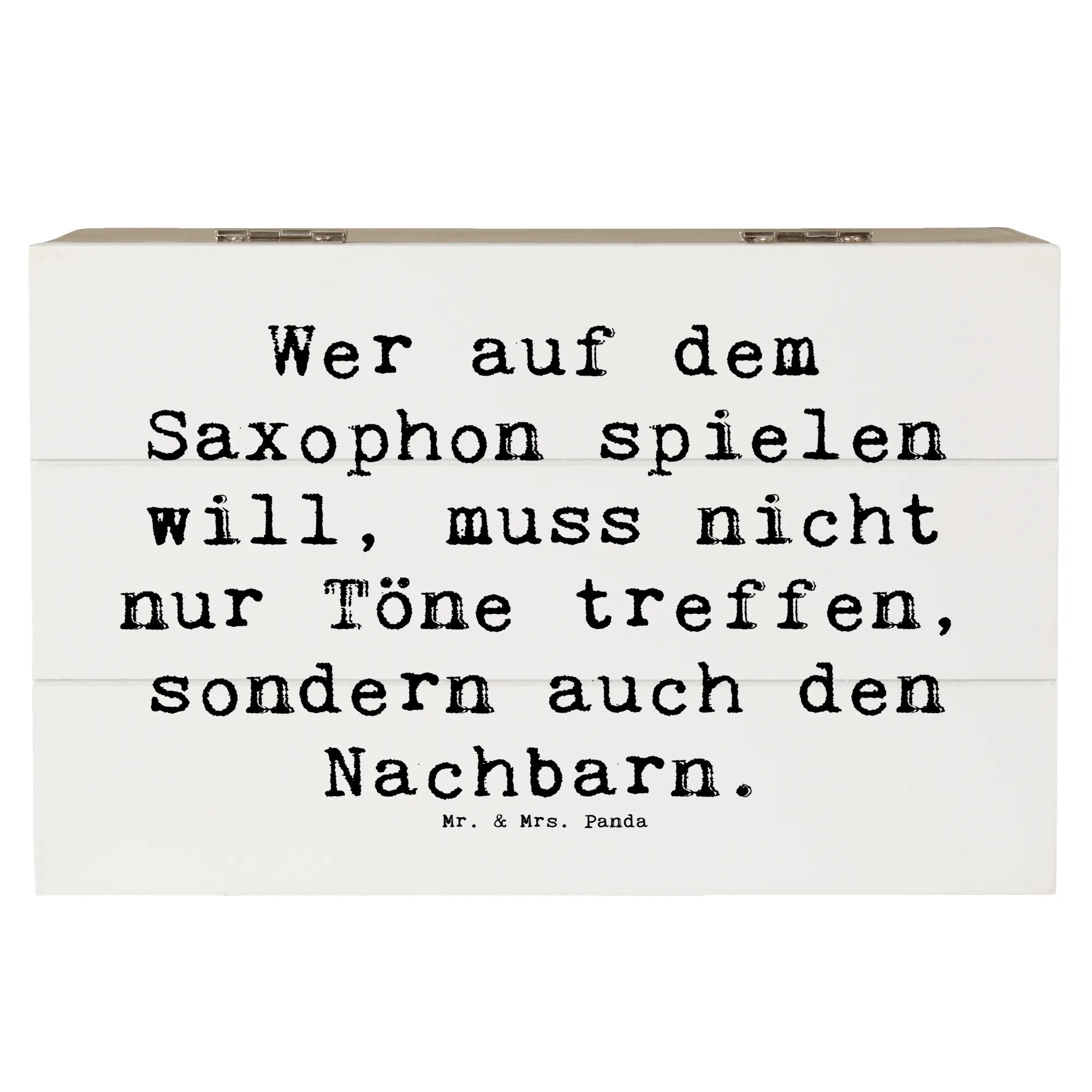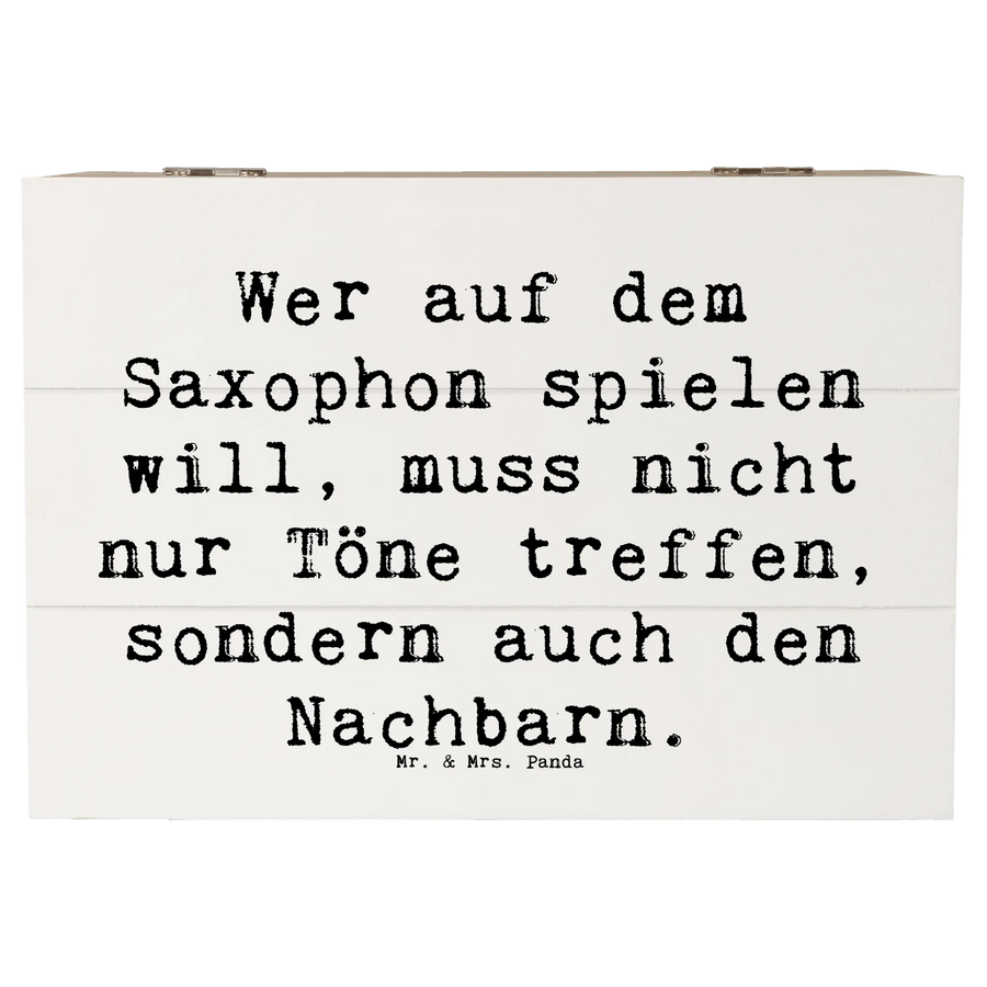 Wooden chest Saying Wer auf dem Saxophon spielen will, muss nicht nur Töne treffen, sondern auch den Nachbarn. - 22 x 15 cm - White