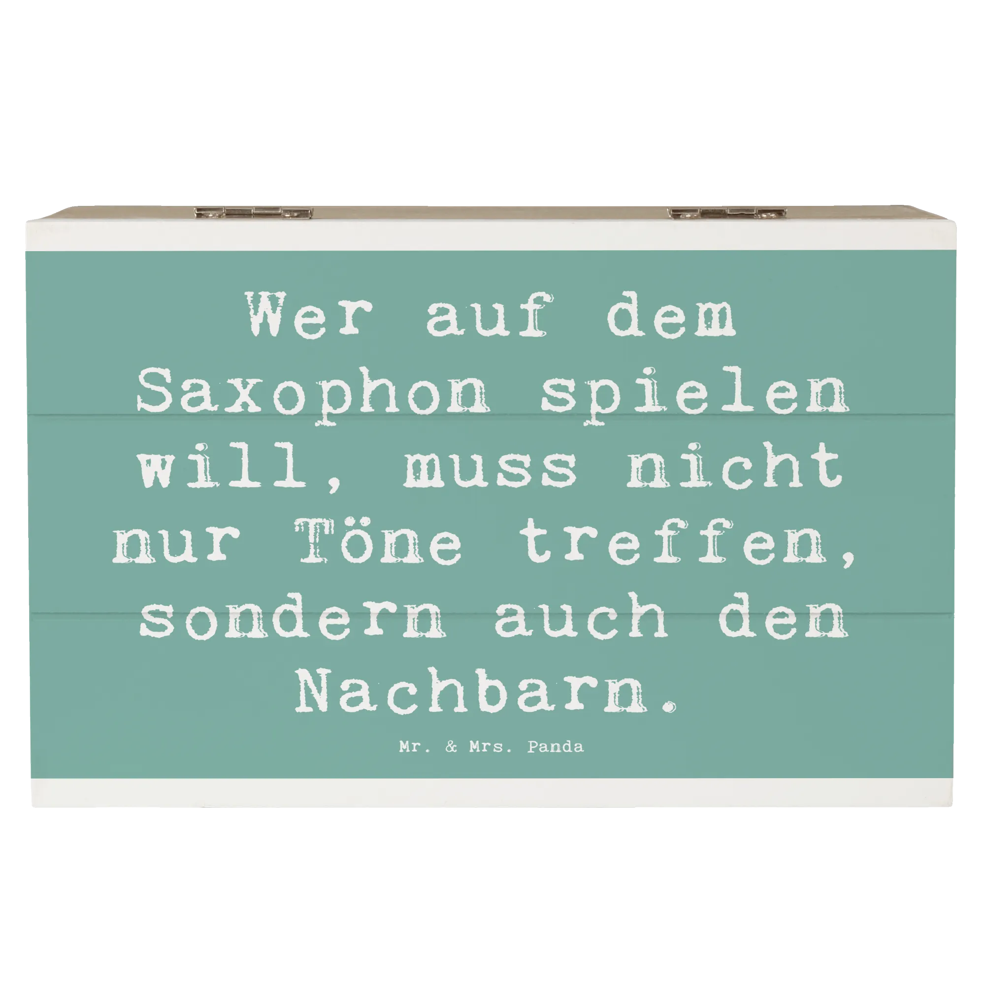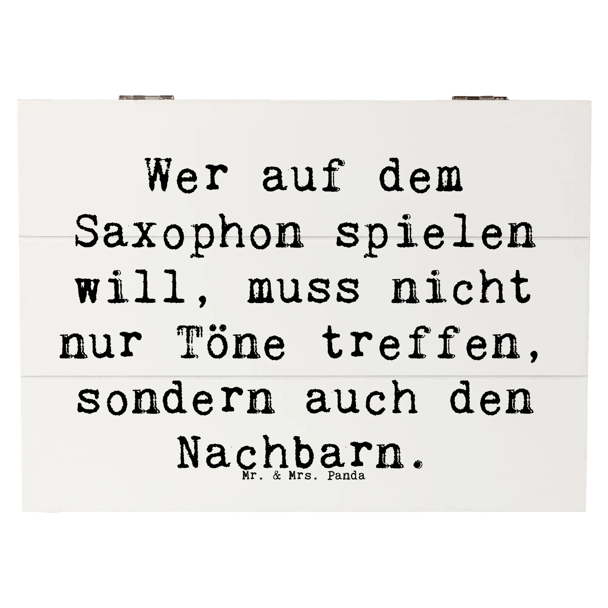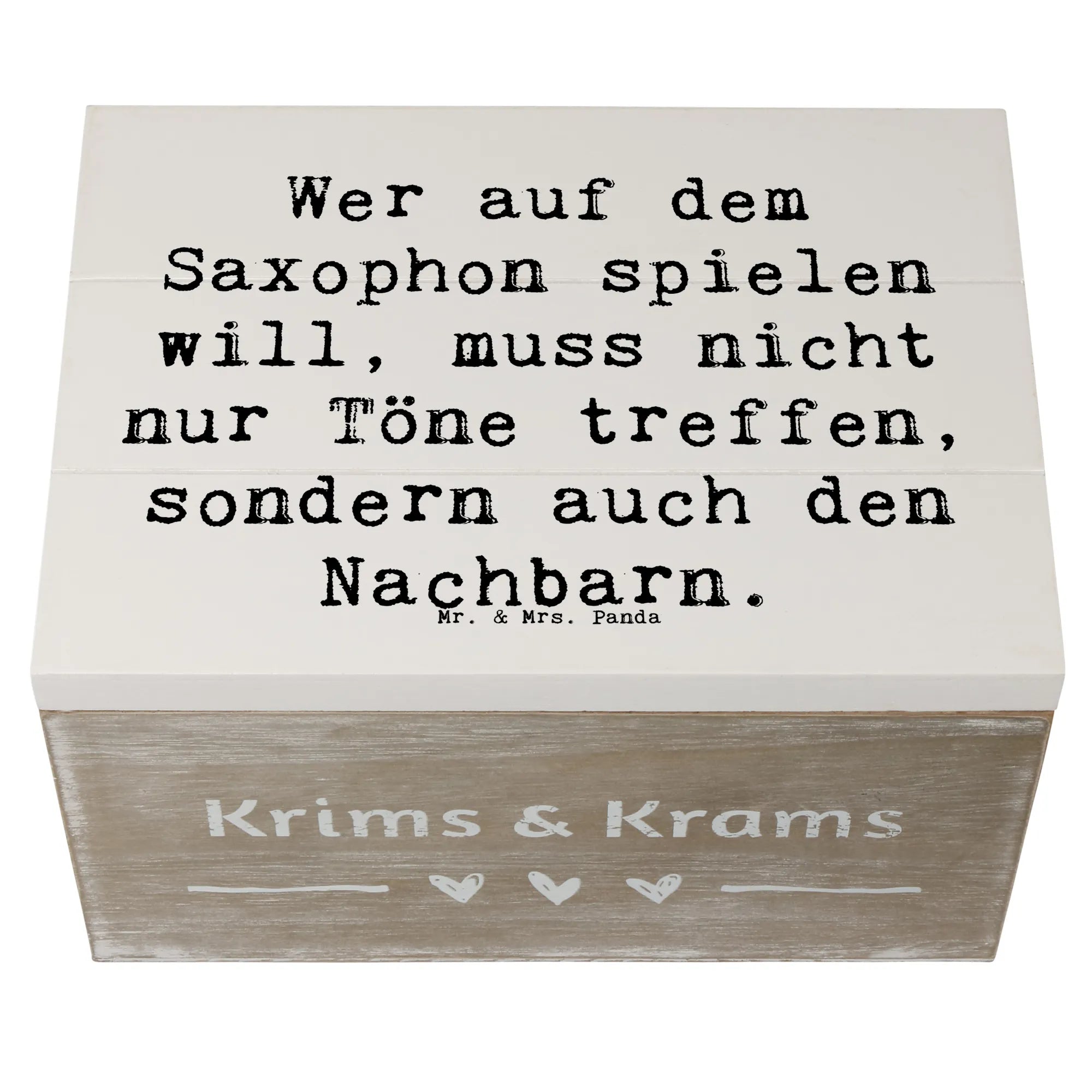Wooden chest Saying Wer auf dem Saxophon spielen will, muss nicht nur Töne treffen, sondern auch den Nachbarn. - 22 x 15 cm - White