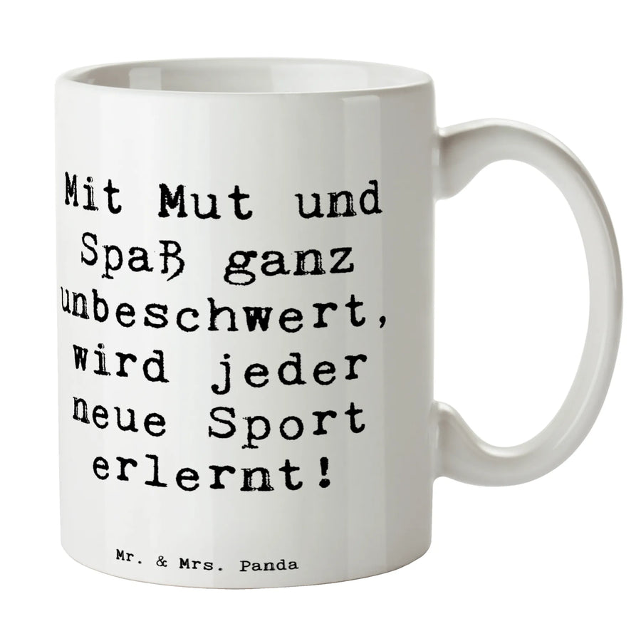 Mug Saying Mit Mut und Spaß ganz unbeschwert, wird jeder neue Sport er – Mr. & Mrs. Panda