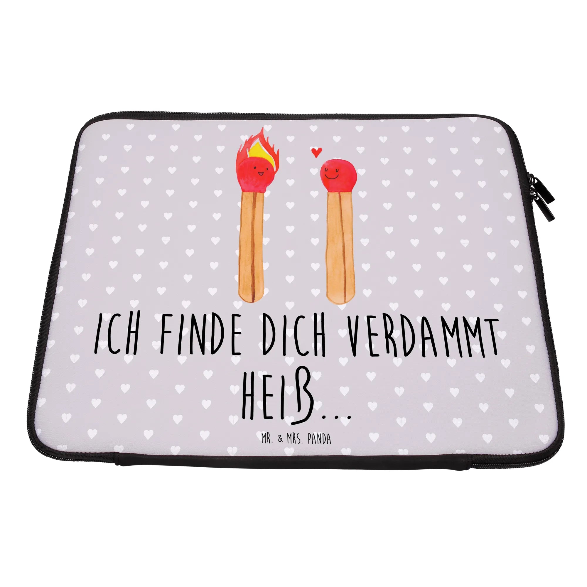 Die süßen handgemalten Motive zeigen zwei niedliche Streichhölzer, die ineinander verliebt sind, unterstrichen von einem kleinen Herz, das ihre Liebe symbolisiert. Mit dieser Computertasche bist du bestens gerüstet, um deinen Laptop oder dein Notebook auf Reisen zu schützen. Aus hochwertigem, wasserabweisendem Neopren gefertigt, schützt sie vor Kratzern, Staub und anderen Schäden. Der robuste Reißverschluss sorgt dafür, dass dein Gerät sicher und geschützt bleibt, egal wo du bist.