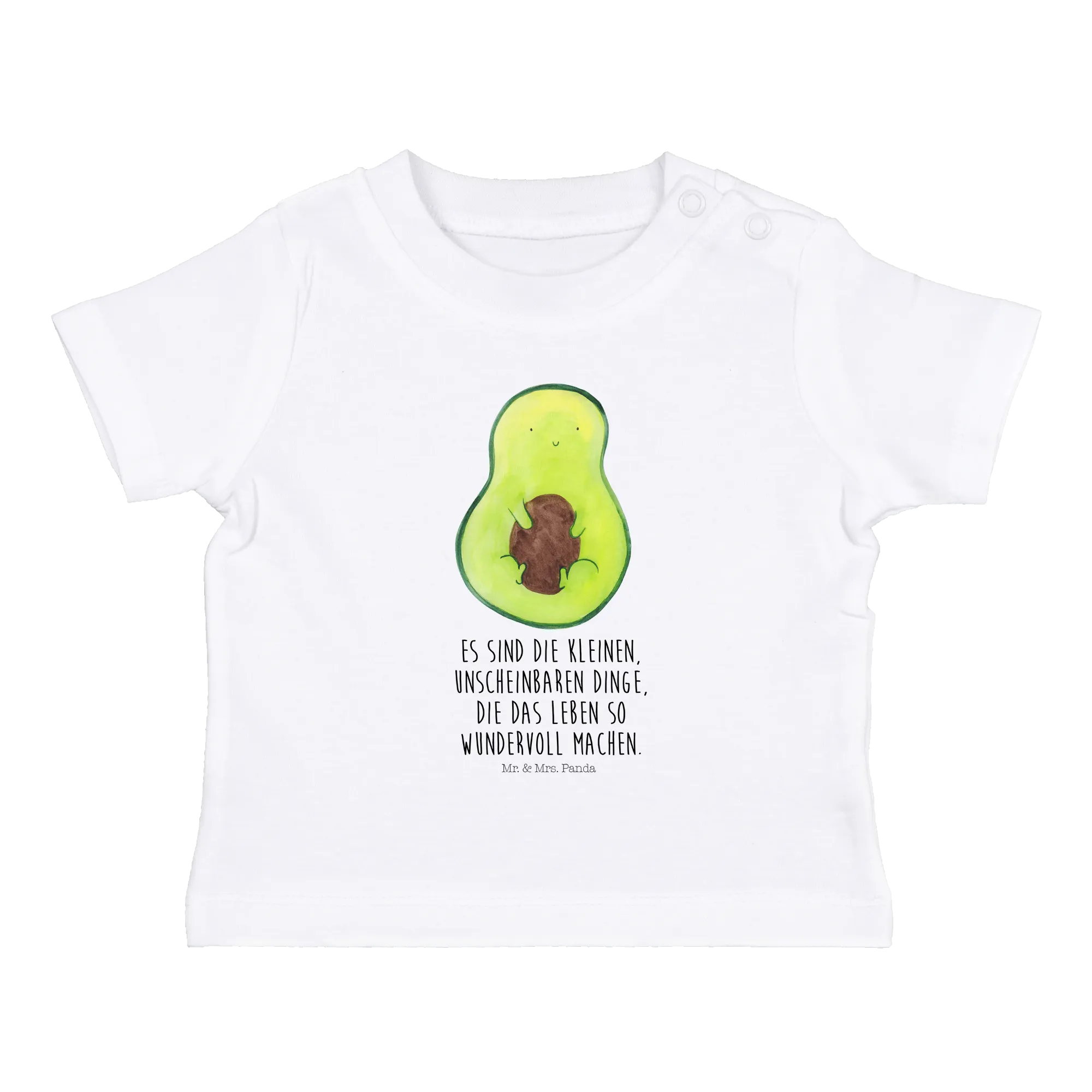 Hand-drawn with love by Mrs. Panda, this cute and cuddly avocado design features a sweet avocado clinging to its pit, bringing a smile to anyone who sees it. Made from eco-friendly cotton, this shirt is as gentle on the environment as it is on your baby's delicate skin. It's perfect for both little boys and girls, making it a versatile choice for any tiny trendsetter from ages 6 to 12 months.
