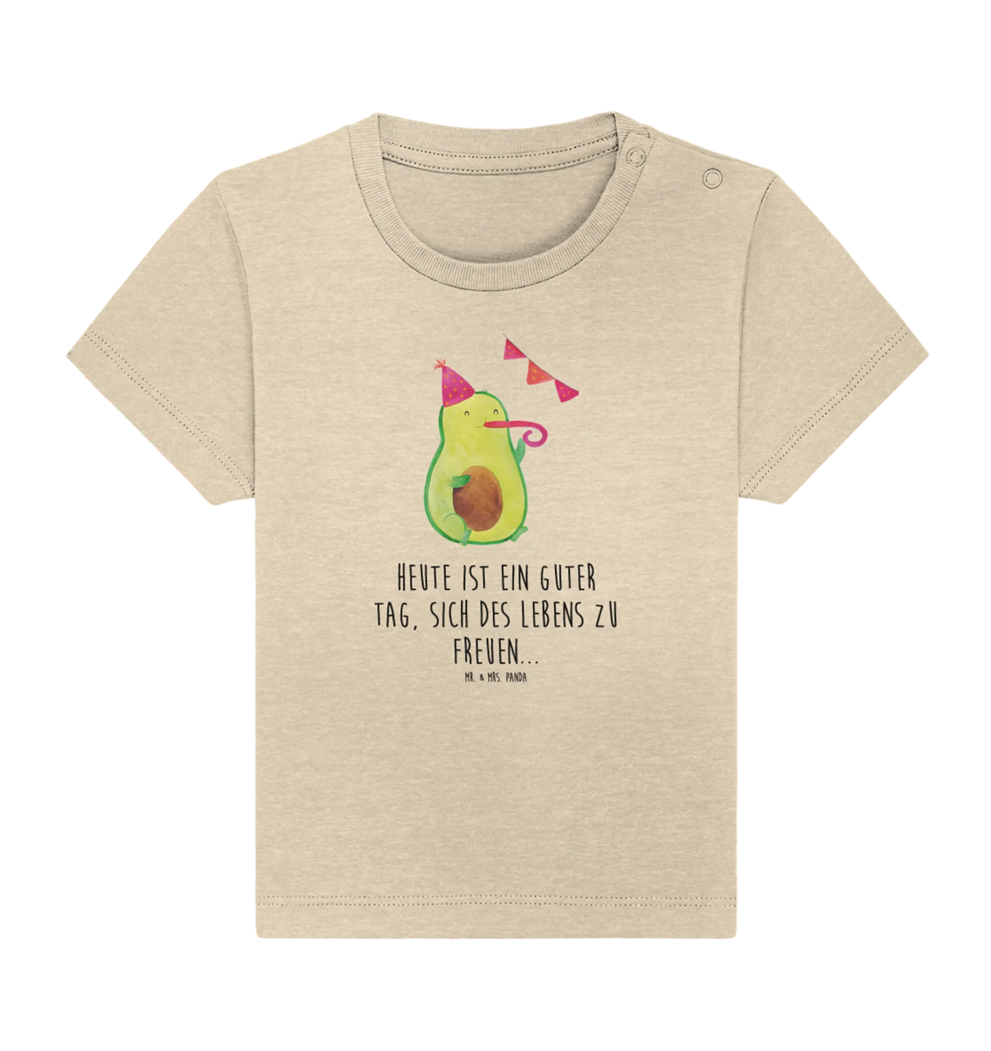 Introducing the delightful Organic Baby Shirt featuring the charming Avocado Party motif from Mr. & Mrs. Panda! This soft and snug shirt is the perfect addition to every little one’s wardrobe, designed especially for all the future party-goers and celebration enthusiasts out there. Hand-drawn with love, our little avocado sports a fun party hat and a cheerful expression, making it an ideal piece for birthdays, family gatherings, or any joyful event.