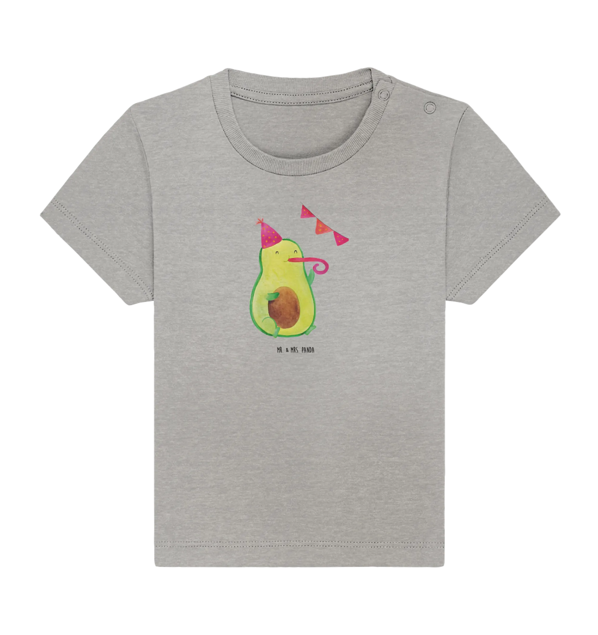 Are you on the lookout for the perfect gift for a little one? Meet our adorable Organic Baby Shirt featuring the delightful Avocado Party motif! This charming design is hand-drawn by Mrs. Panda, showcasing a sweet avocado wearing a party hat and cheerfully blowing into a party horn. It’s an absolute must-have for babies aged 6 to 12 months who are ready to celebrate their special moments in style!