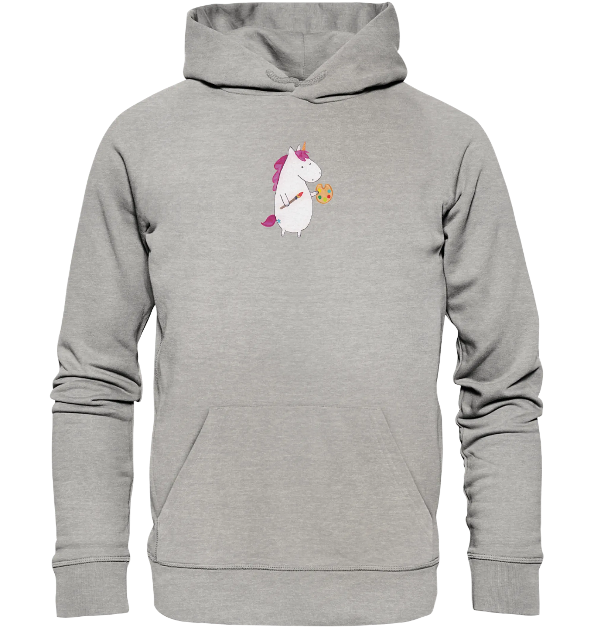 Suchst du ein zauberhaftes, nachhaltiges Geschenk? Unser Organic Hoodie „Einhorn Künstler" von Mr. & Mrs. Panda ist genau das: ein liebevoll gestaltetes Bio Hoodie, das Kreativität, Komfort und Umweltbewusstsein verbindet. Das handgezeichnete Einhorn an der Staffelei trägt Pinsel und Stifte und erinnert daran, die Welt nach den eigenen Farben zu gestalten. Obwohl das Motiv ohne Text ist, strahlt es pure Inspiration aus.