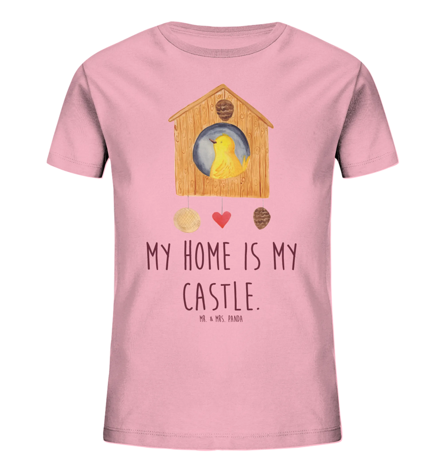 Imagine a cute little bird all cozily nestled in its birdhouse, a symbol of warmth, family, and home sweet home. With the vibrant colors and hand-drawn designs by Mrs. Panda, this T-shirt captures the essence of childhood wonder and innocence, making it more than just apparel—it's a celebration of life and nature. The charming slogan "My home is my castle" adds a playful touch, reminding kids that wherever they go, their home is their favorite place.